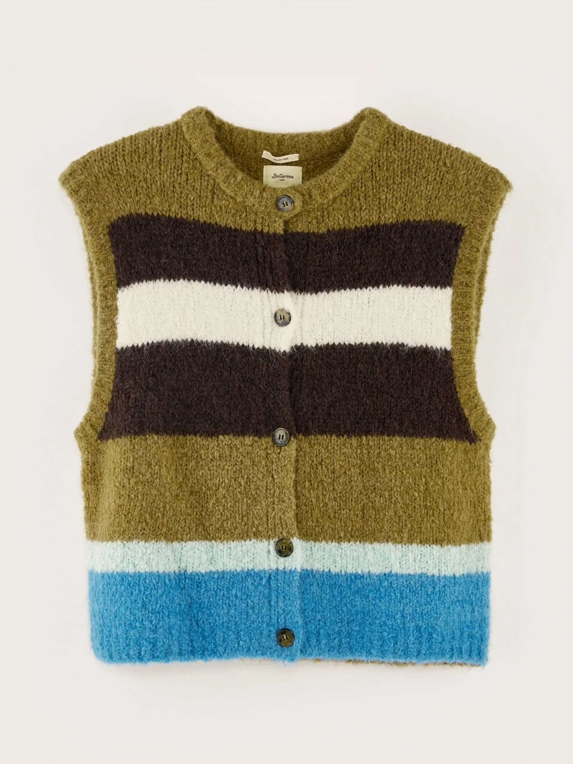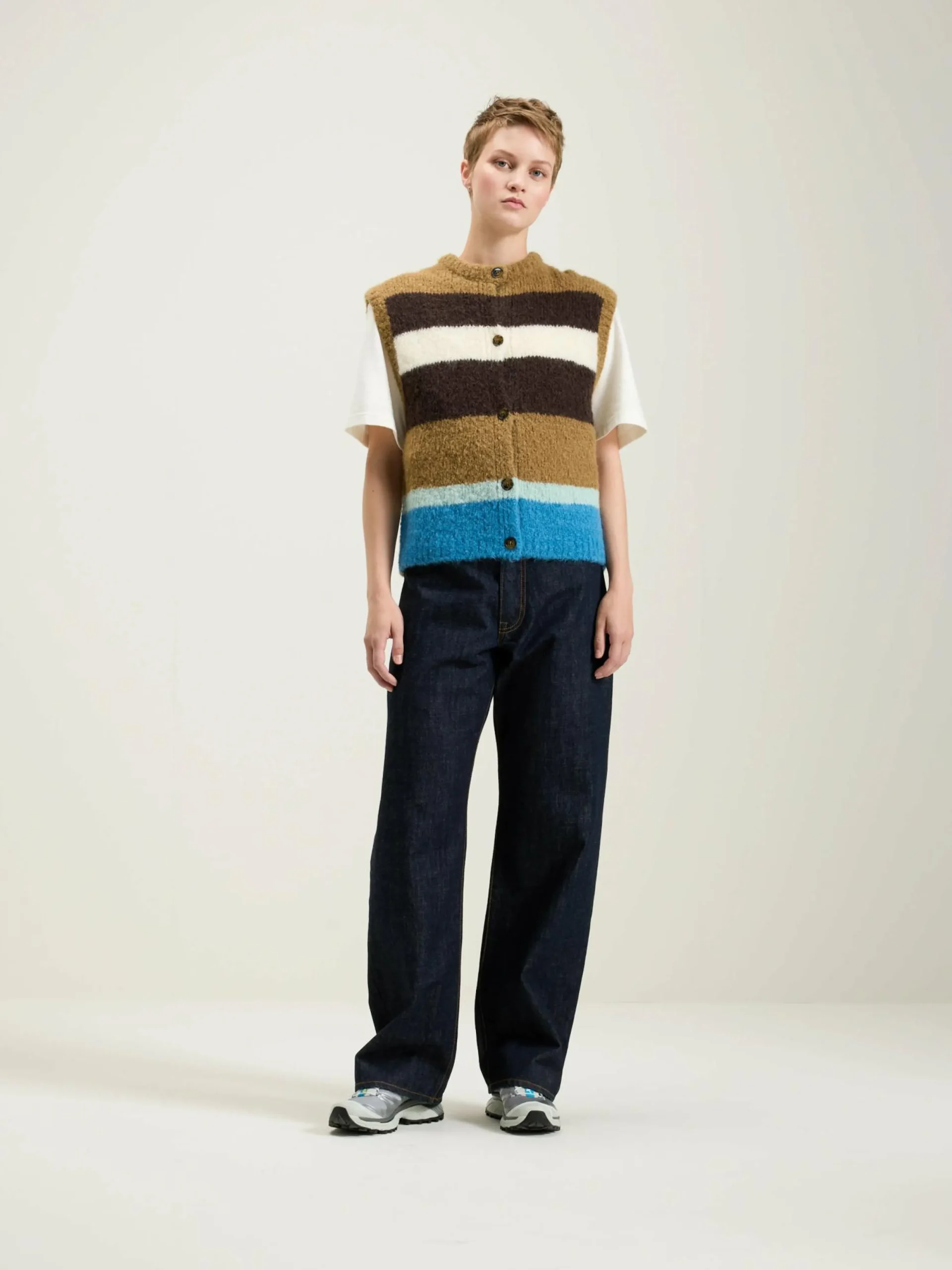 Mouwloze debardeur met veelkleurige strepen.