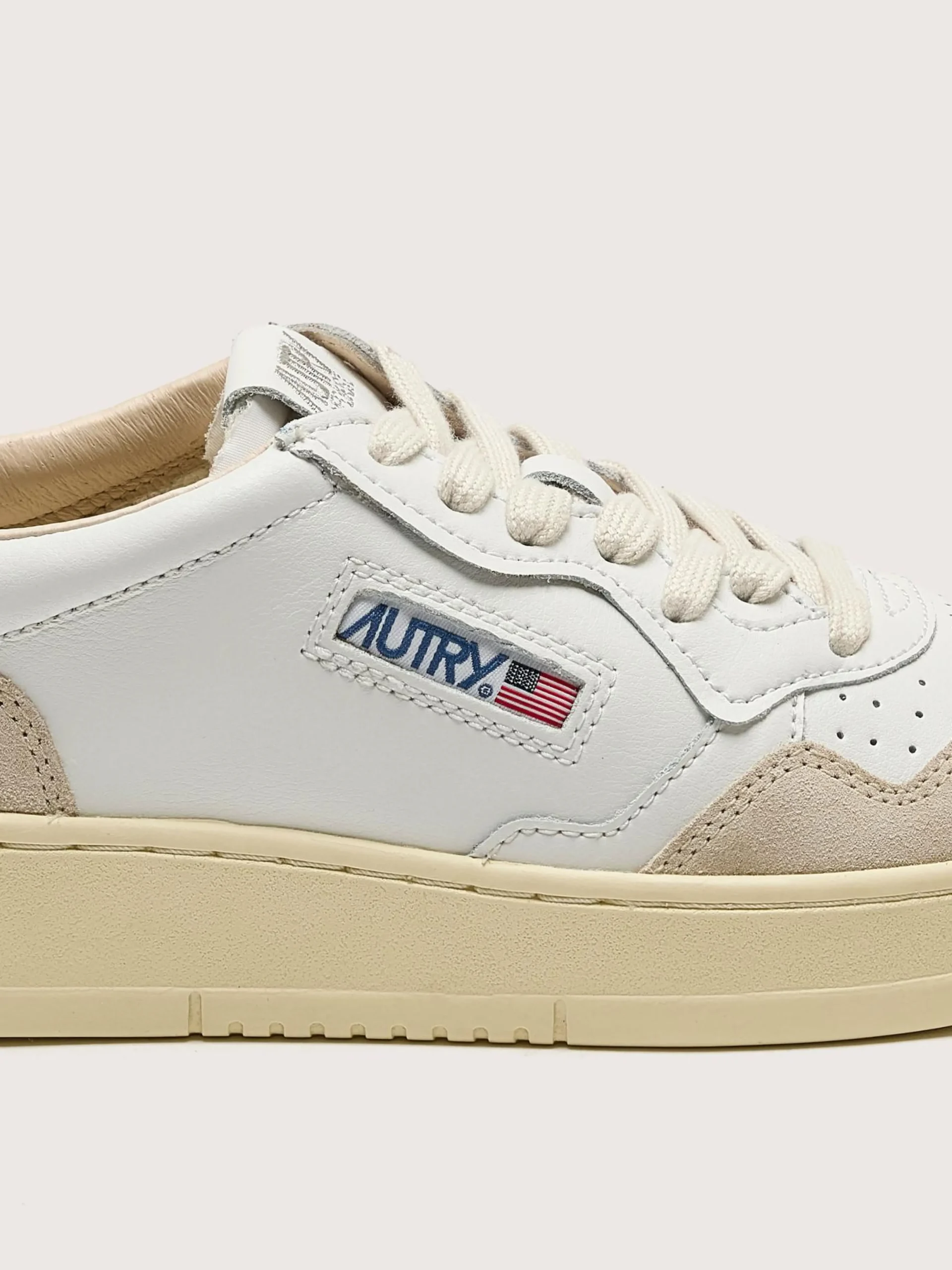 - Kleur: White leather and Beige suede