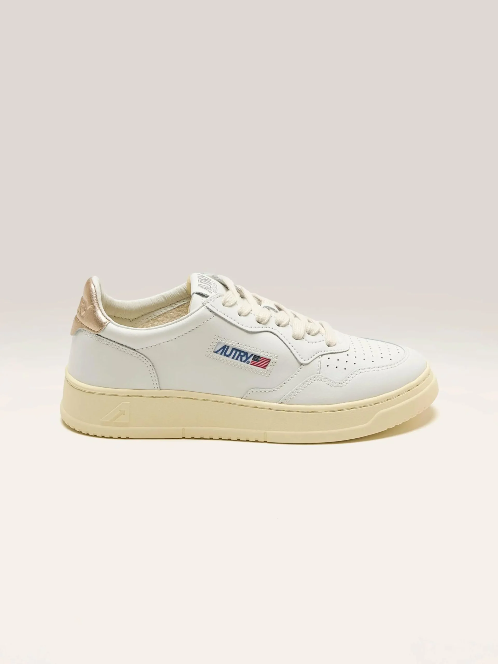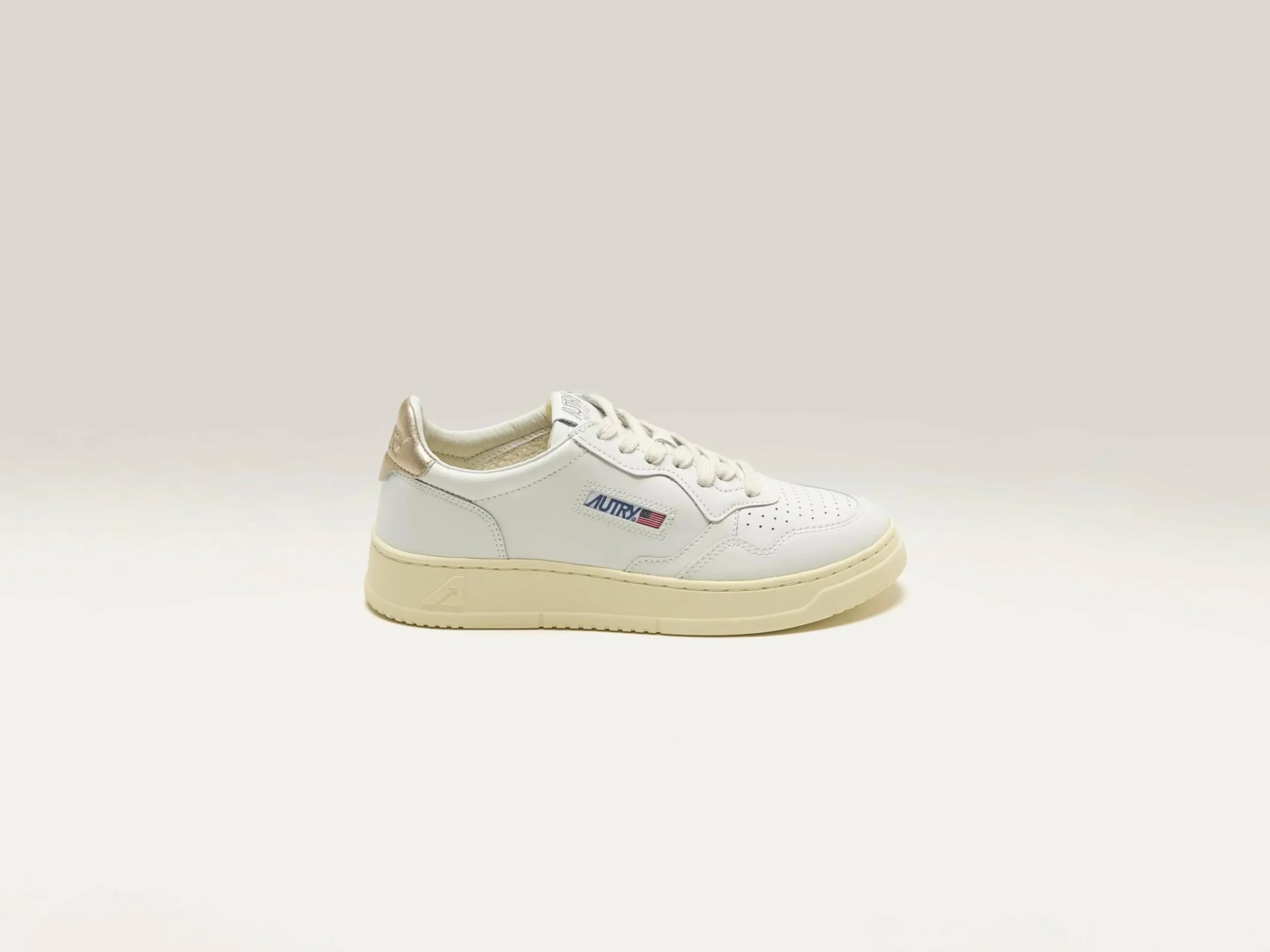 De Autry Medalist Low lifestyle sneakers hebben een sportief silhouet in wit leder met een gouden lederen hiellipje.