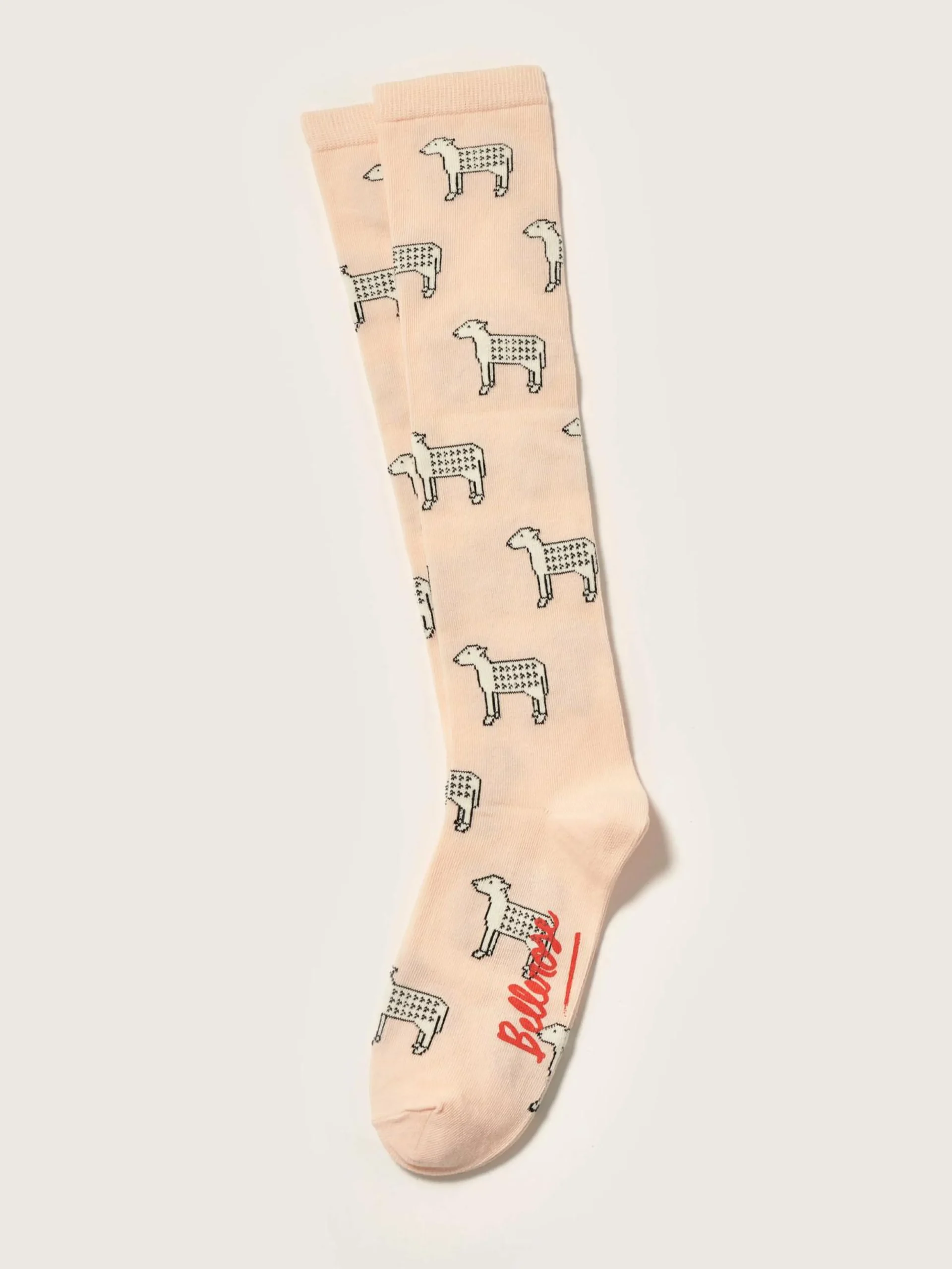 Kniekousen met jacquard schaappatroon en Bellerose x The Animal Observatory-print op de voetzool.