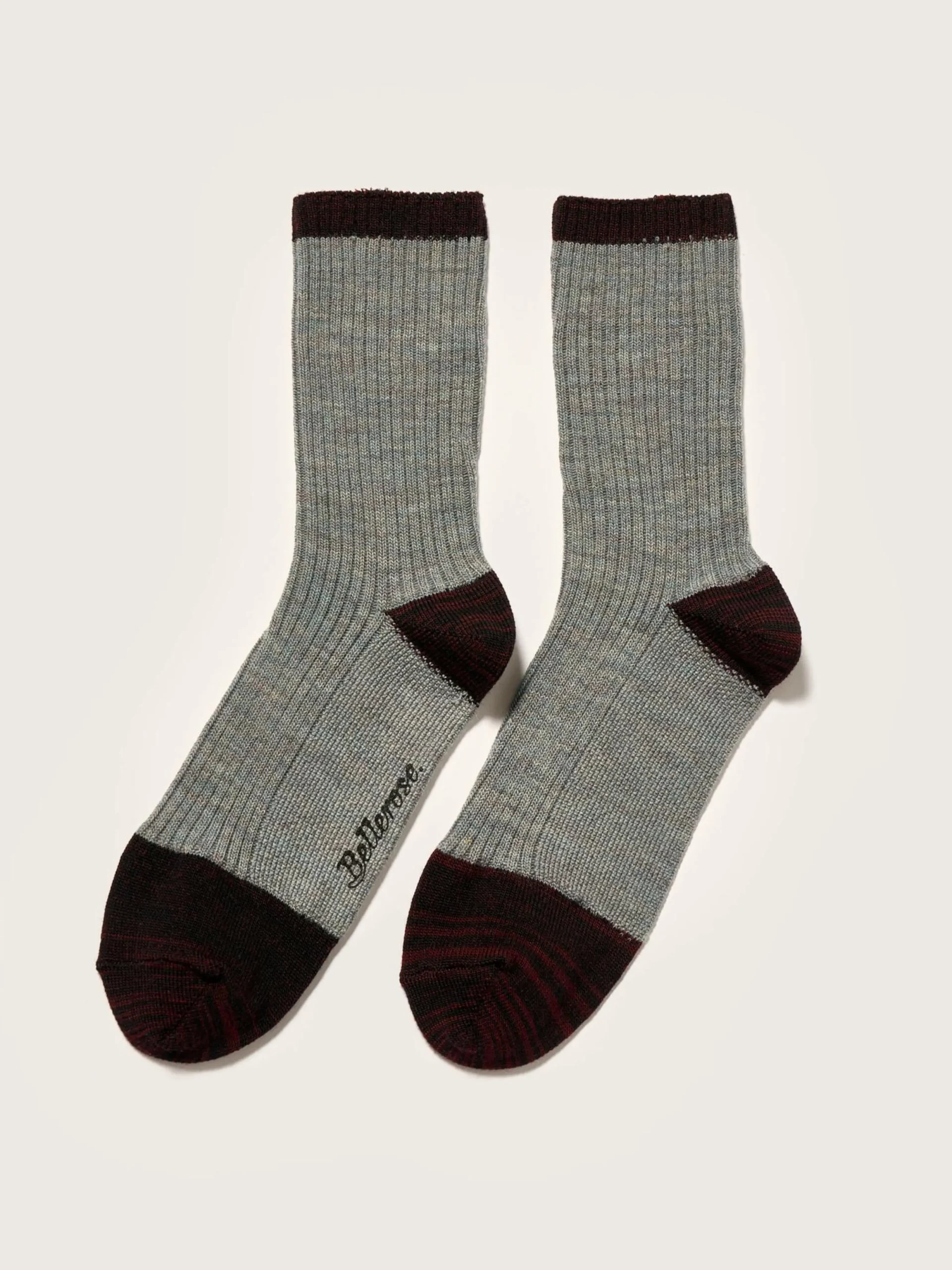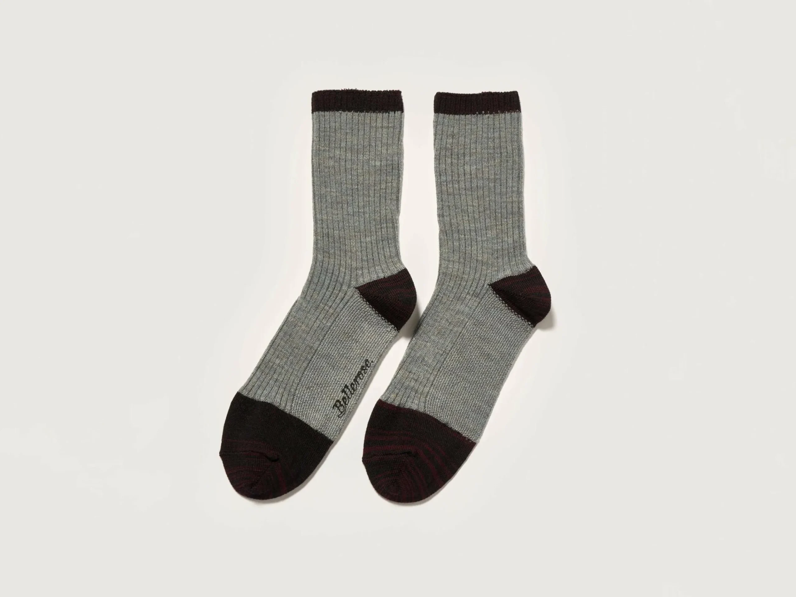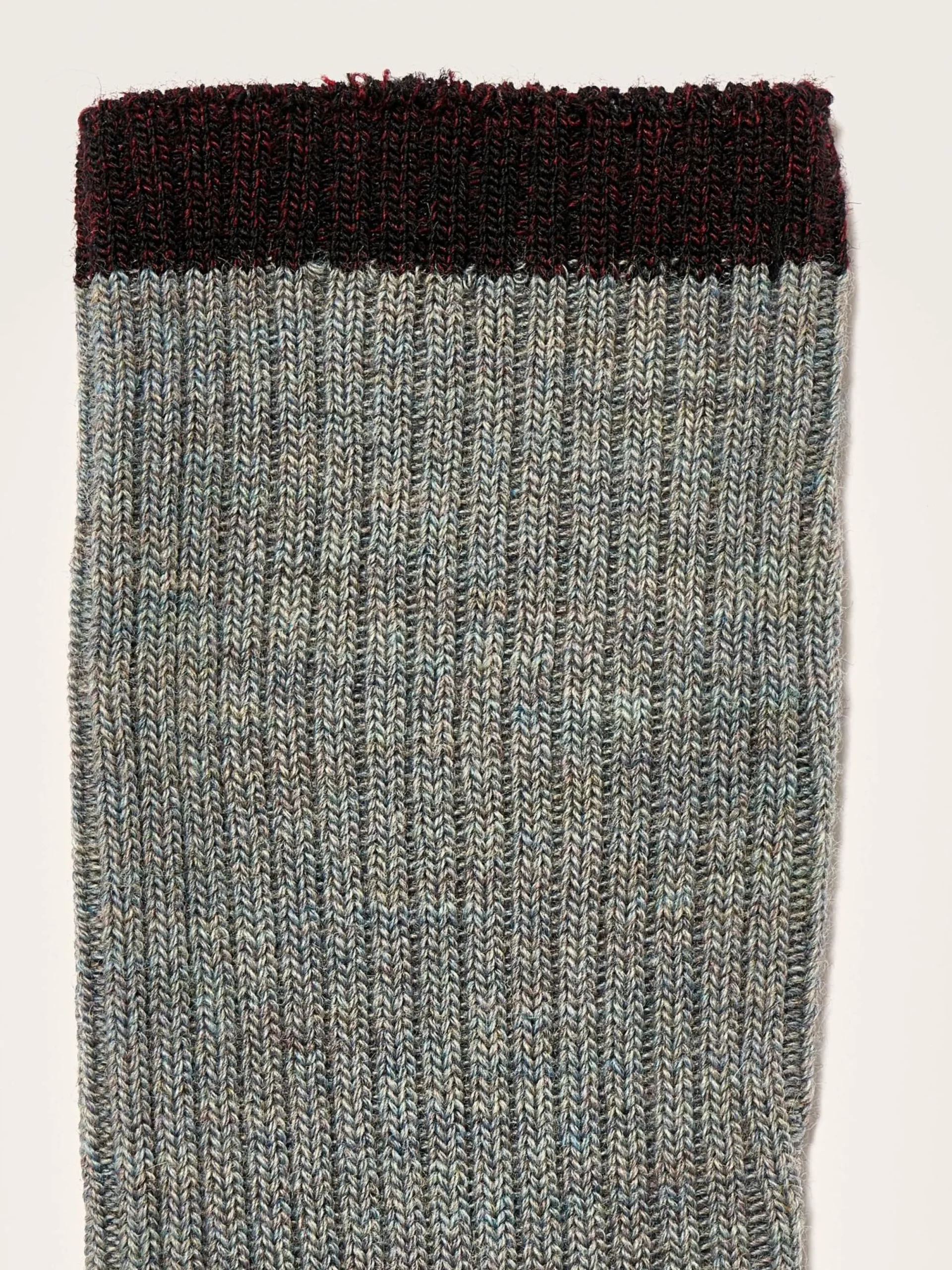Klassieke grijze sokken met contrasterende randen, hielen en tenen van meerkleurig garen.