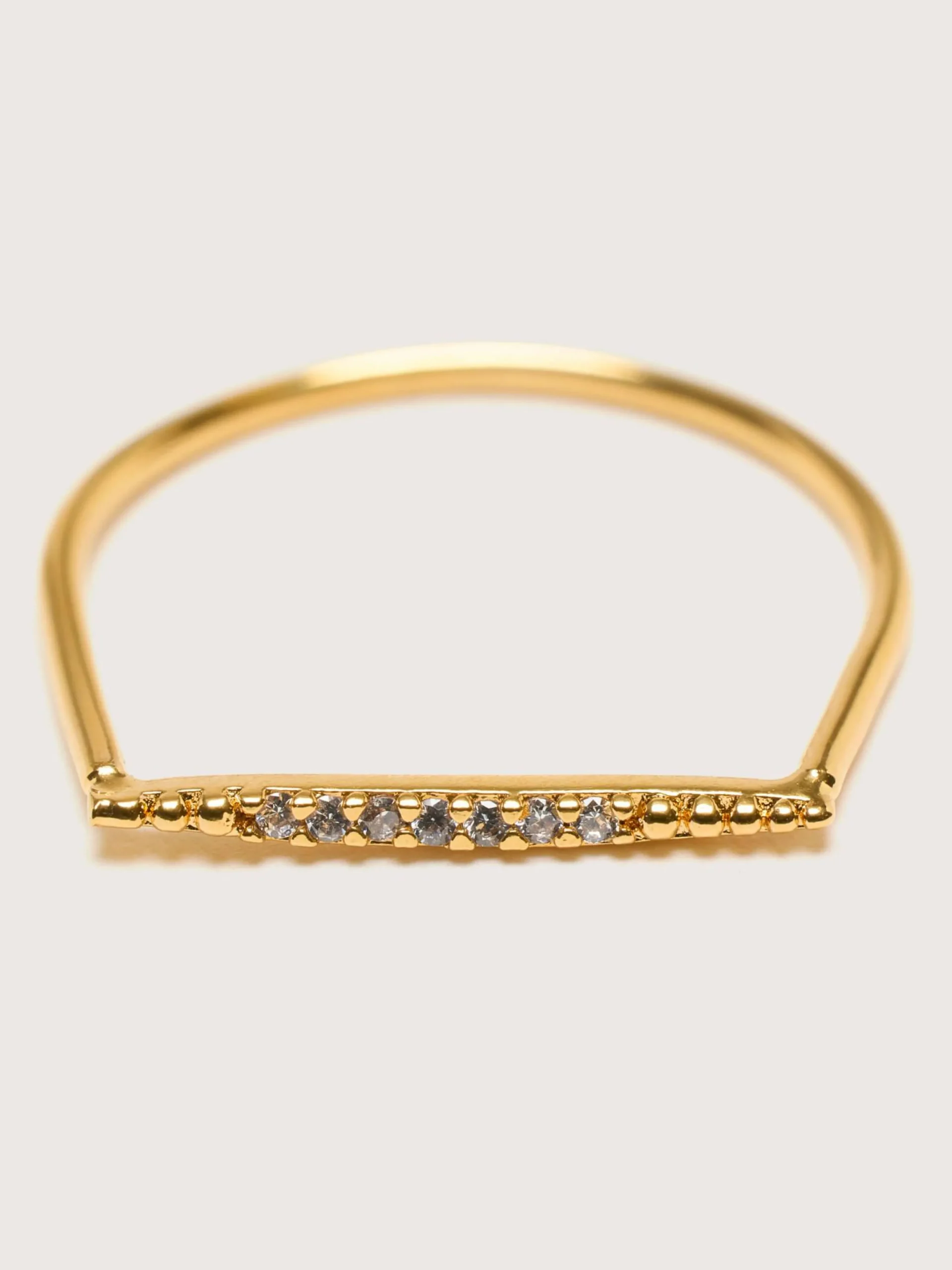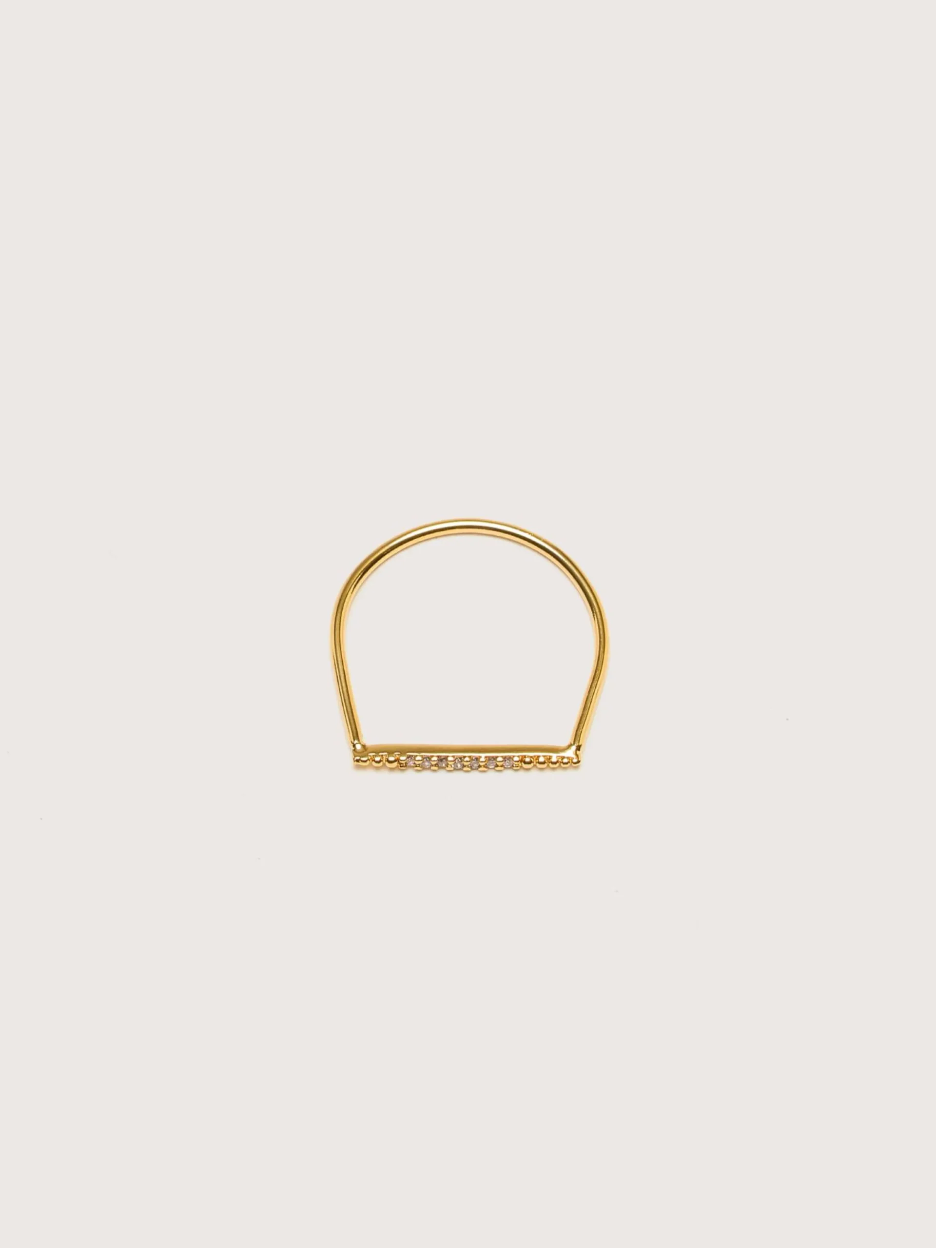 De BDM Studio Imai open ring is verstelbaar en gemaakt van 24k verguld messing, ingelegd met Swarovski-steentjes.