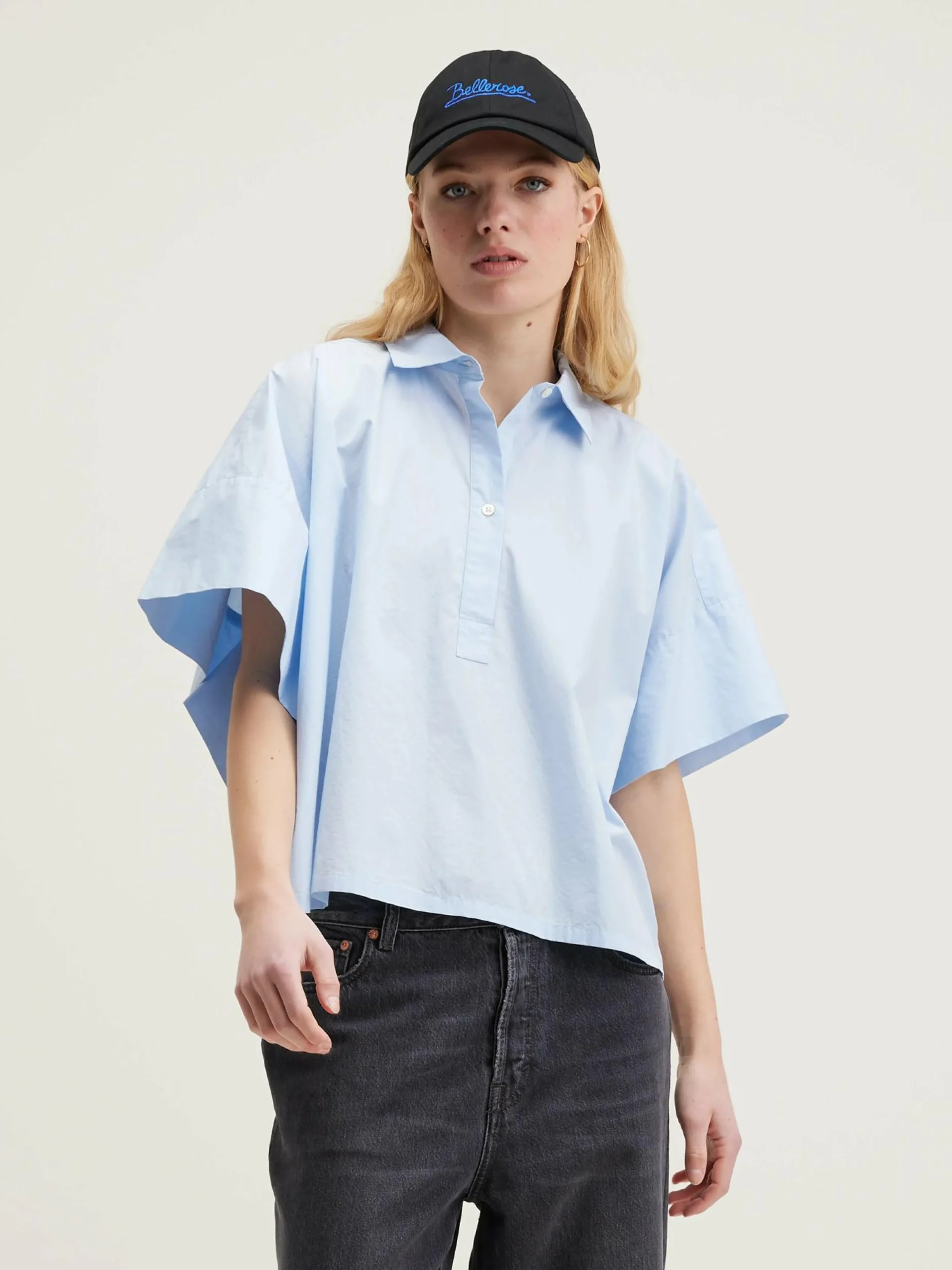 Oversized hemd met korte mouwen van lichtblauw poplinekatoen.