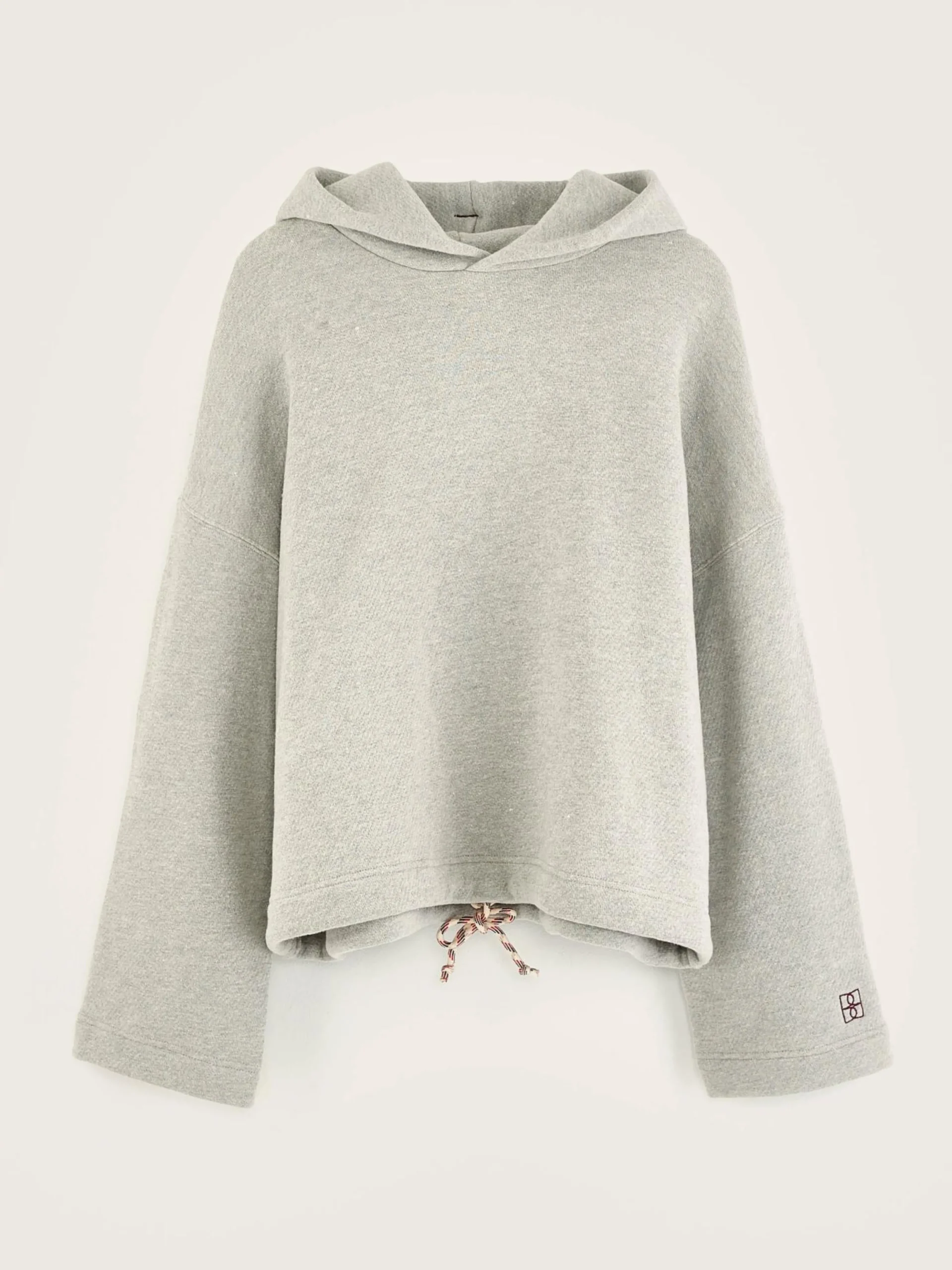 Grijs gemĂȘleerde, oversizede hoodie met wijde mouwen, van katoenjersey.