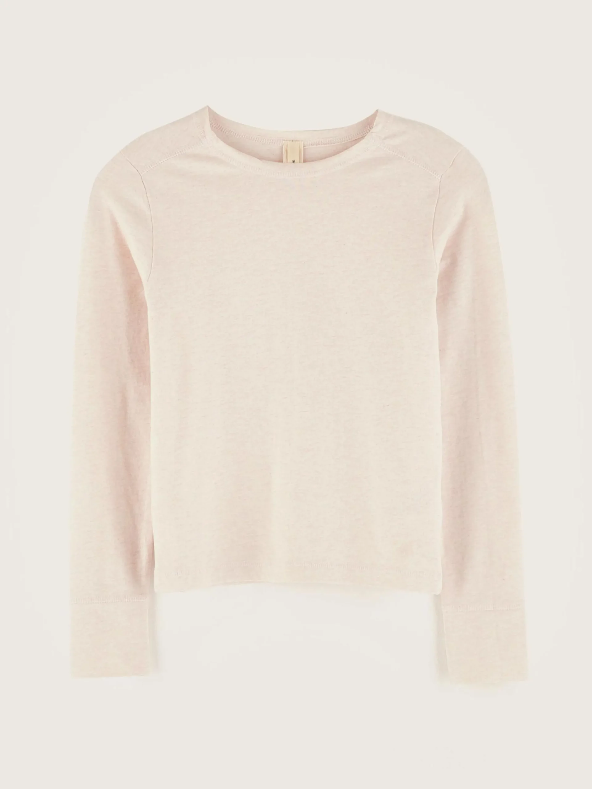 Roze katoenen T-shirt met lange mouwen en een aansluitend model.