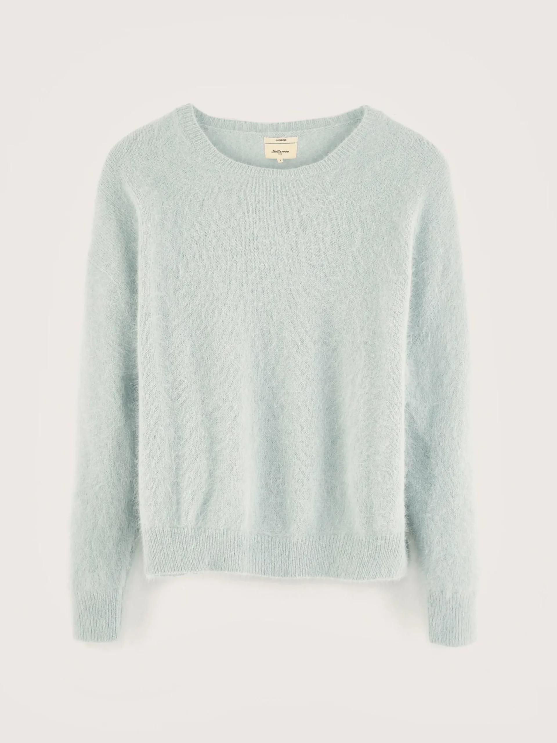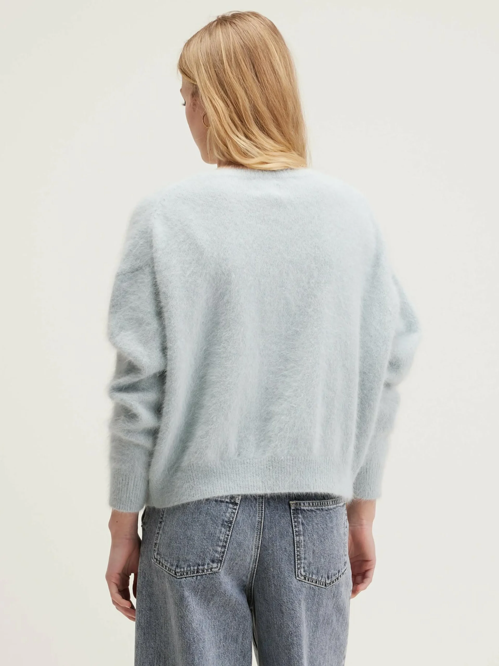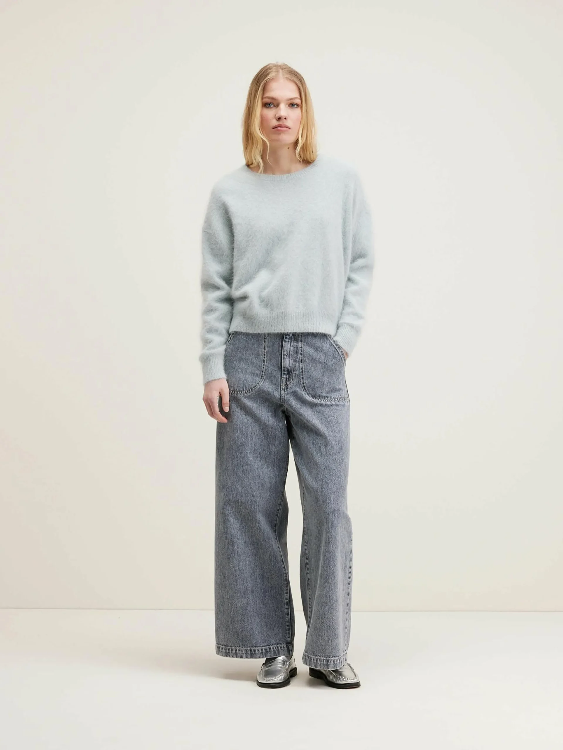 Oversizede, grijze trui met ronde hals, van angoramix.