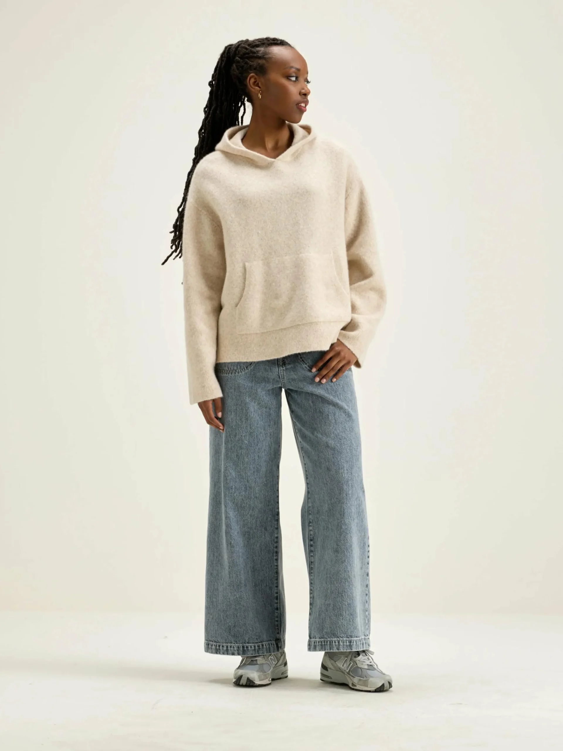 Gebreide ecru, oversizede hoodie.