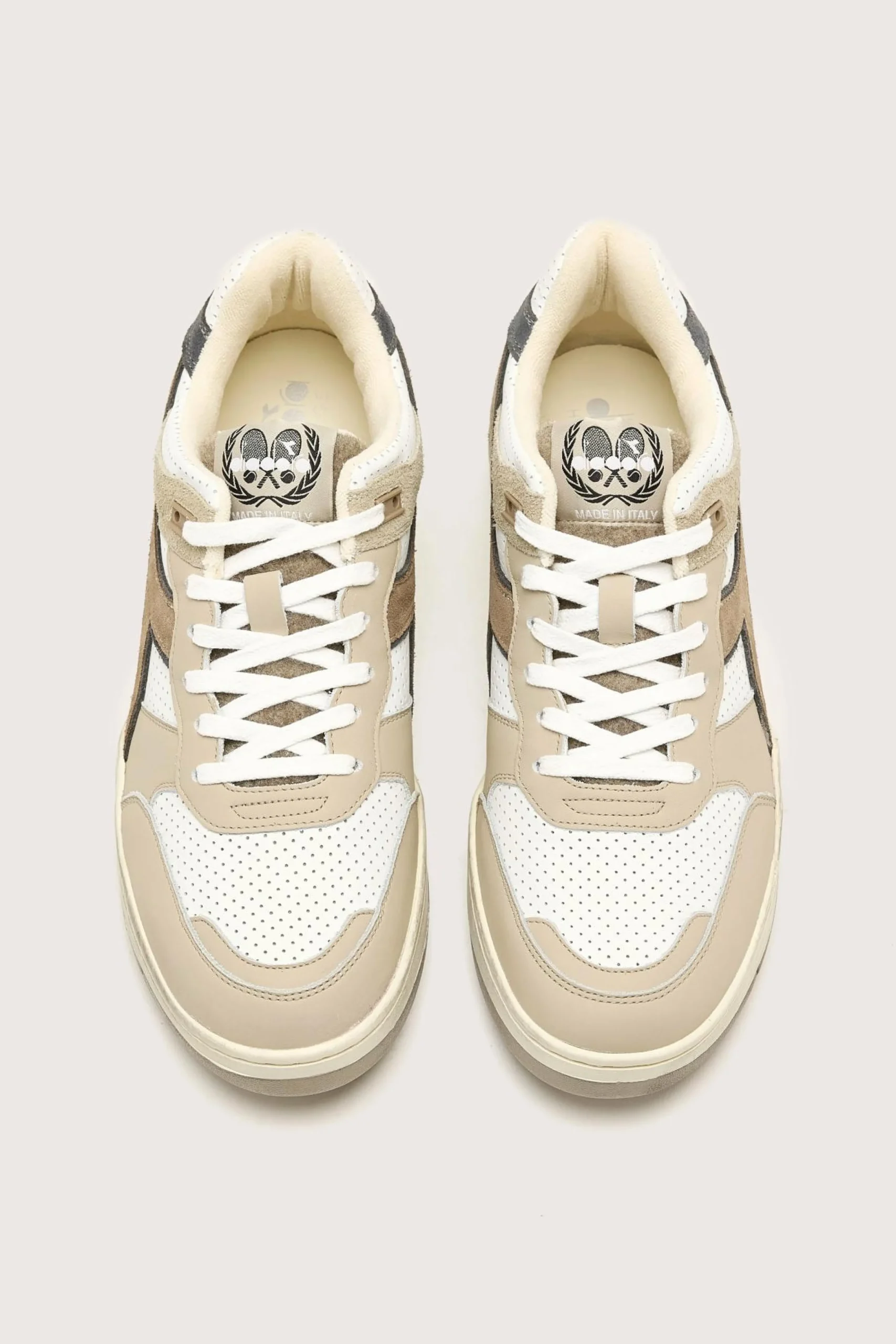 The Diadora B.560 Torino Italia heritage sneakers feature a 90’s silhouette crafted from micro-perforated full-grain leather and hairy suede.