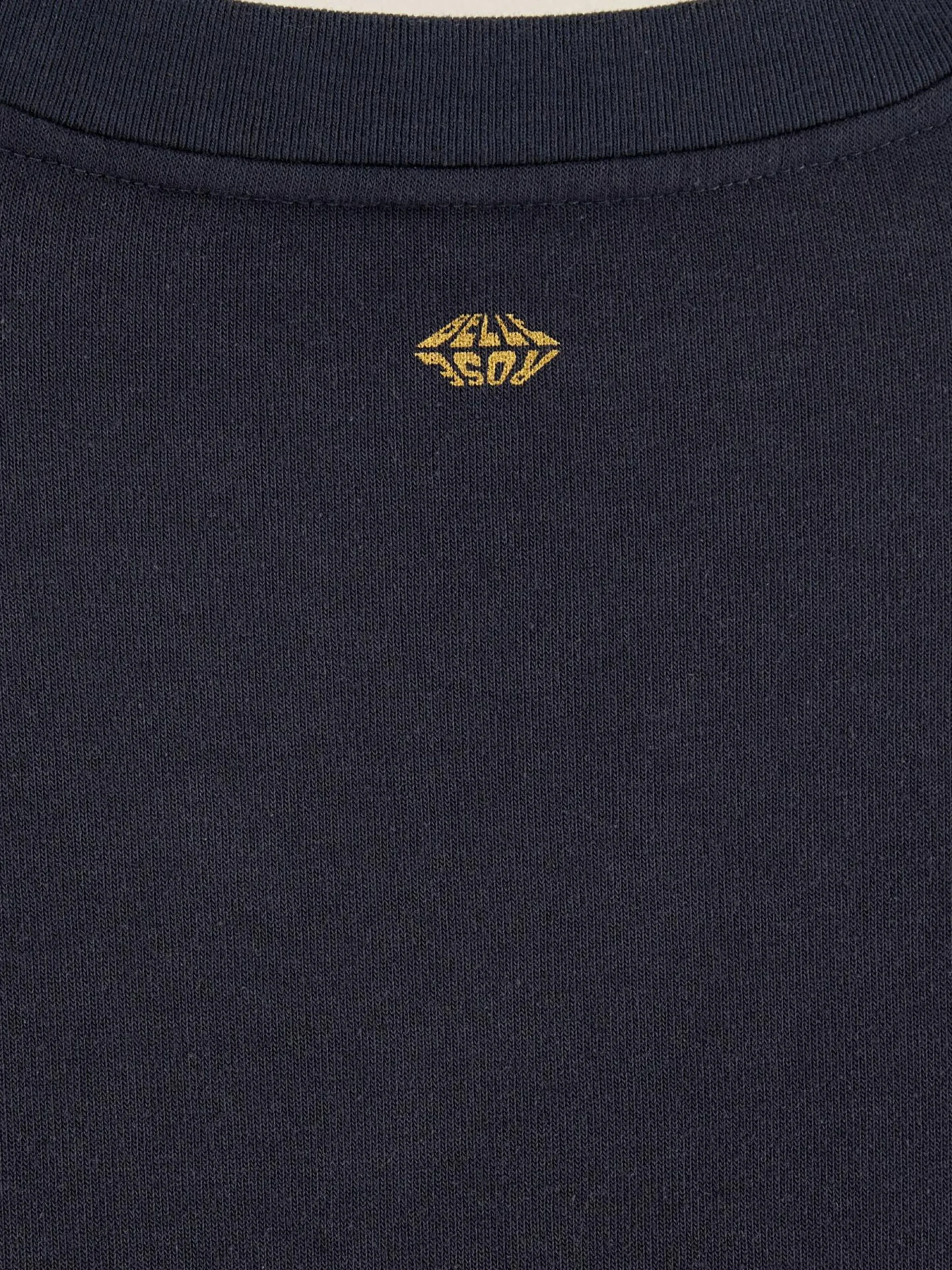 Mini-sweatshirt jurk van donkerblauwe fleecestof.