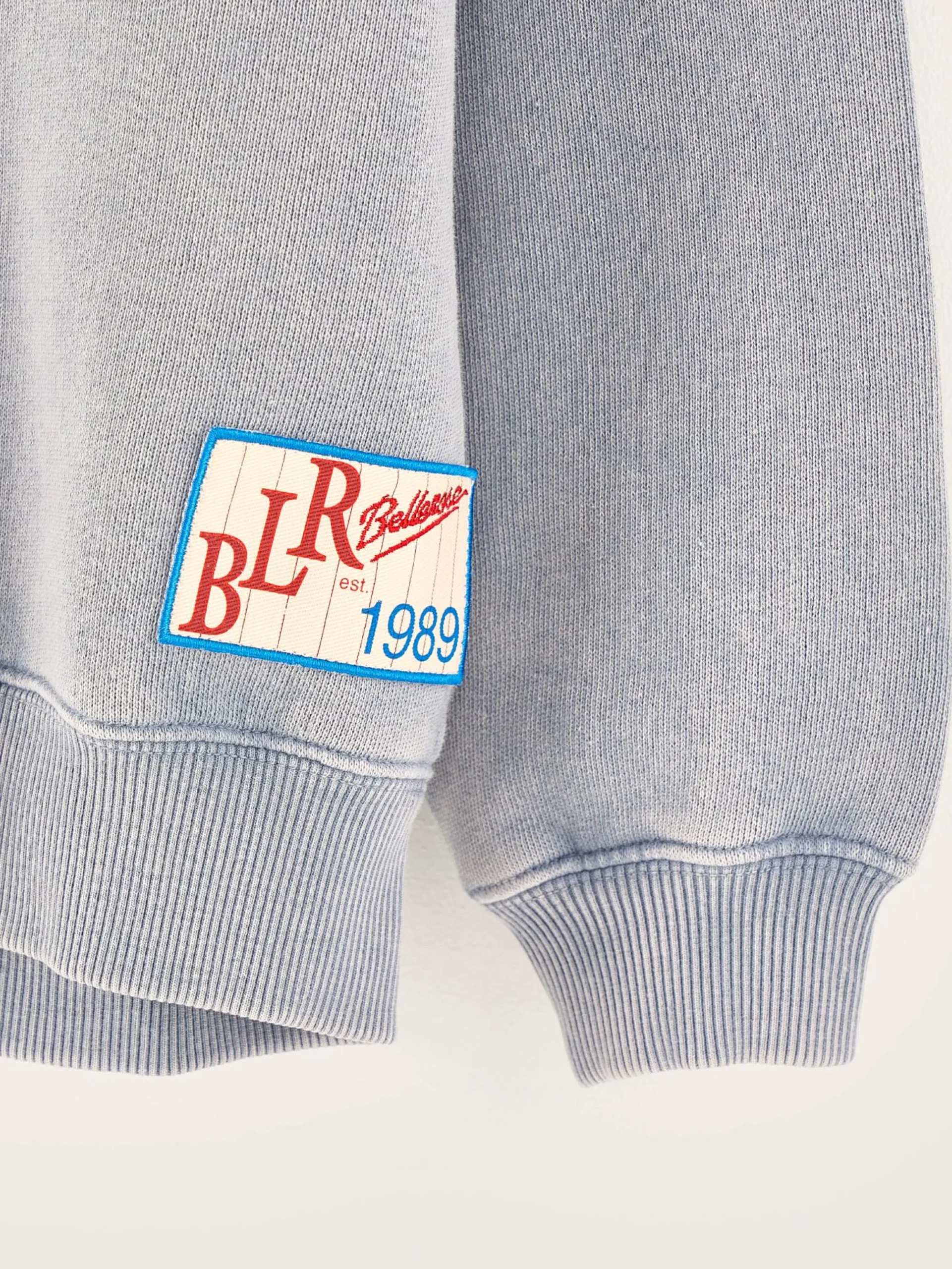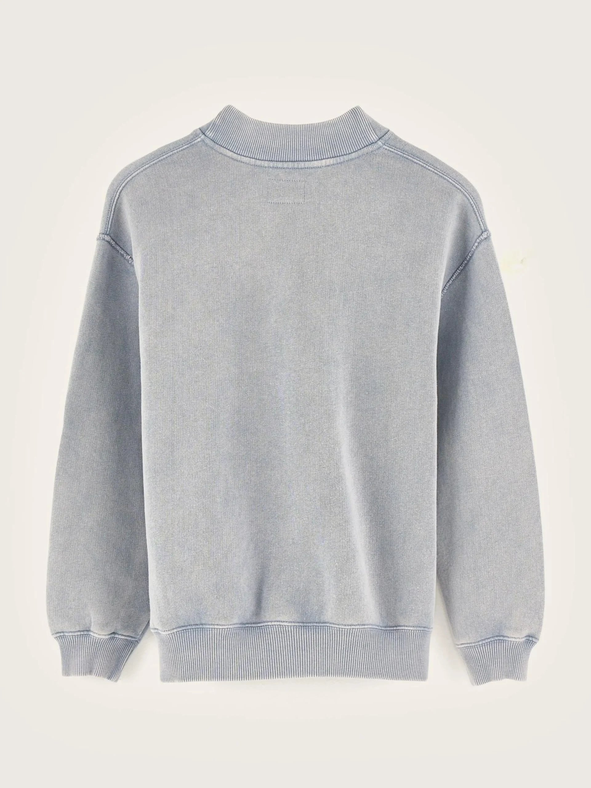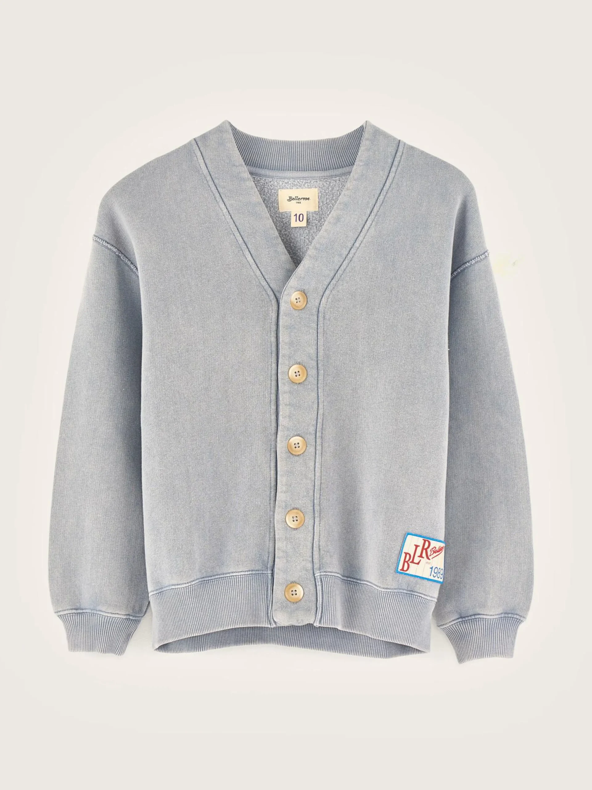 Klassieke grijze cardigan met V-hals, van jerseyfleece.