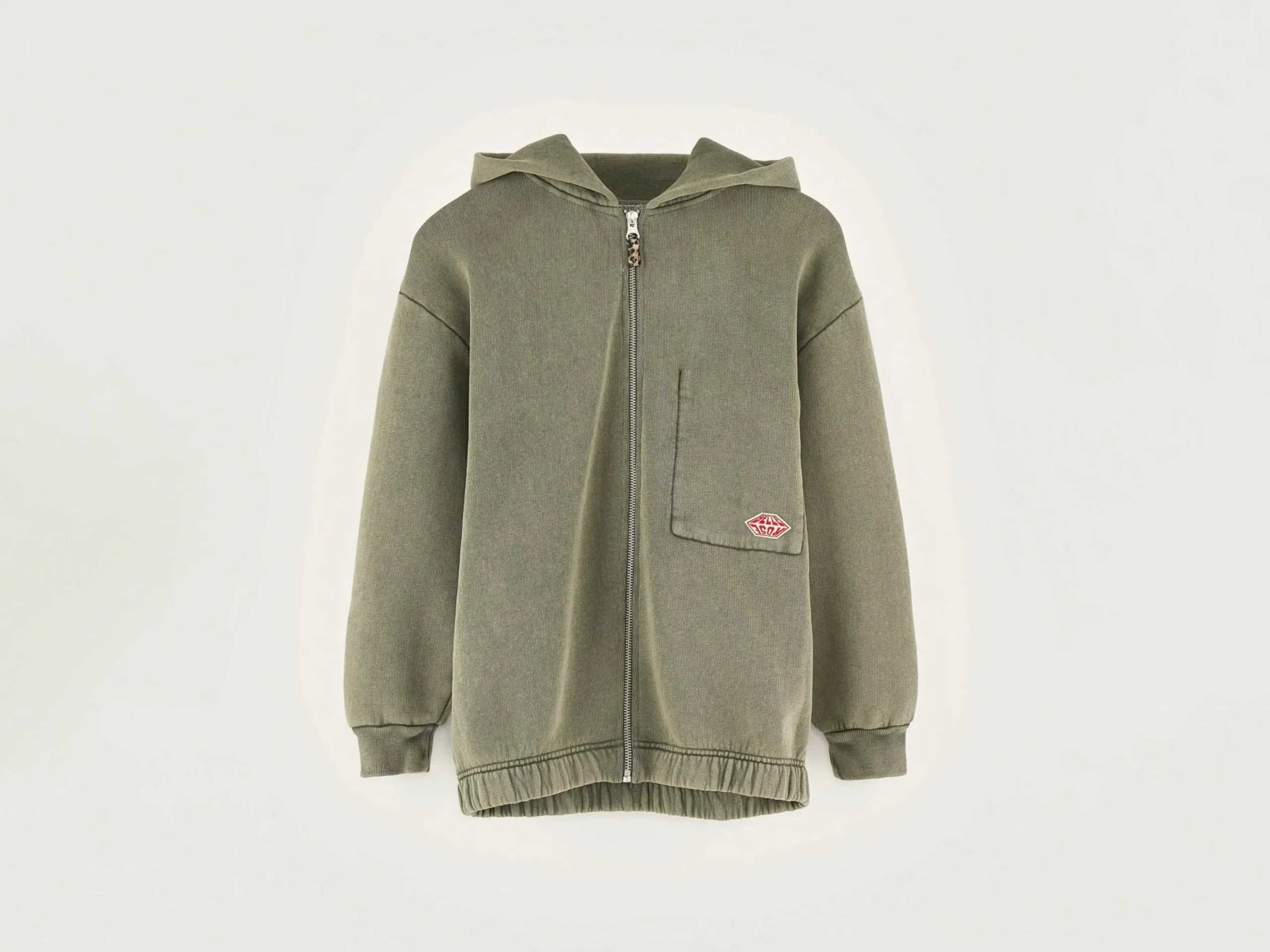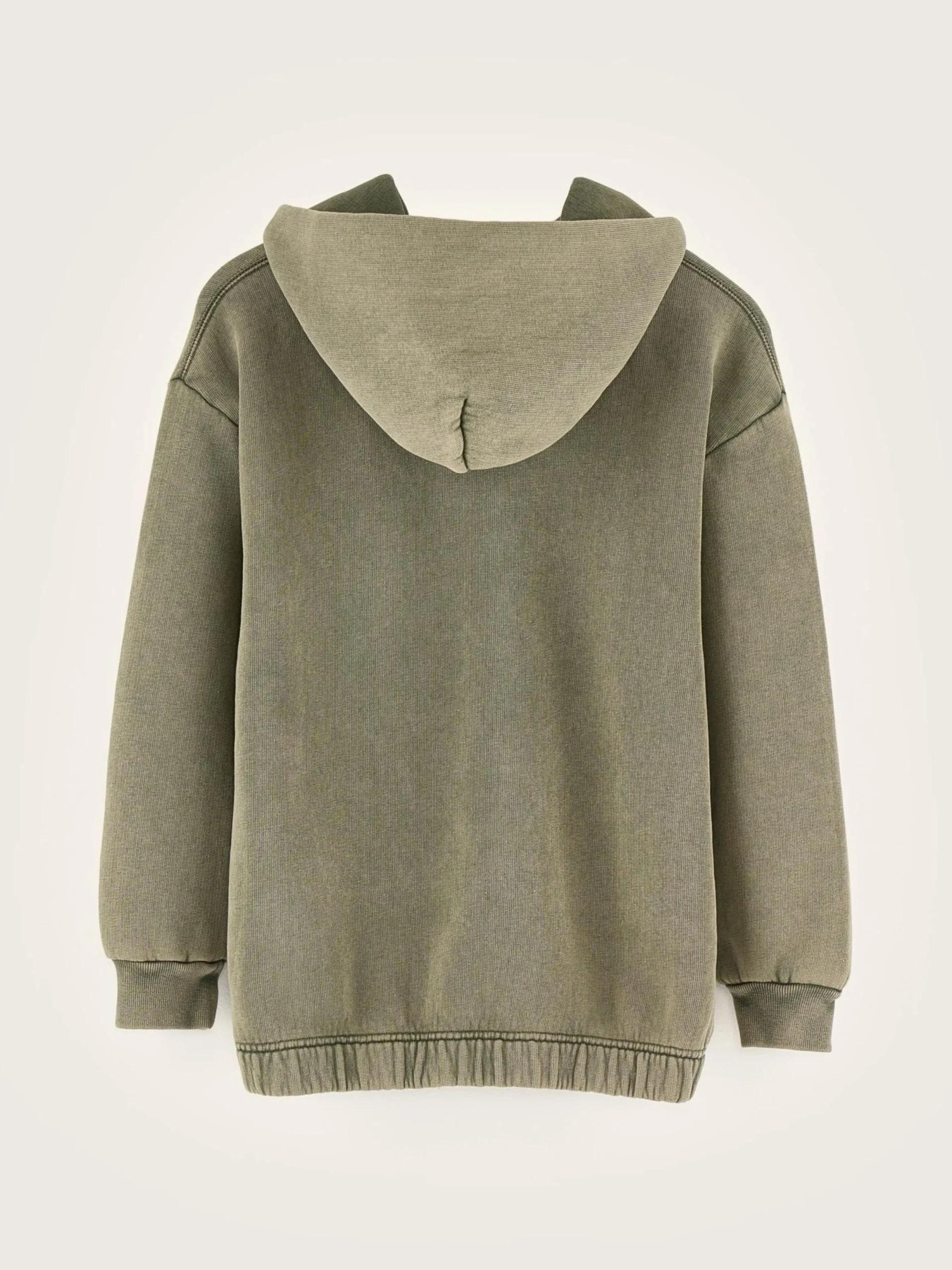 Mosgroene, oversizede hoodie van jersey fleece, met ritssluiting vooraan.