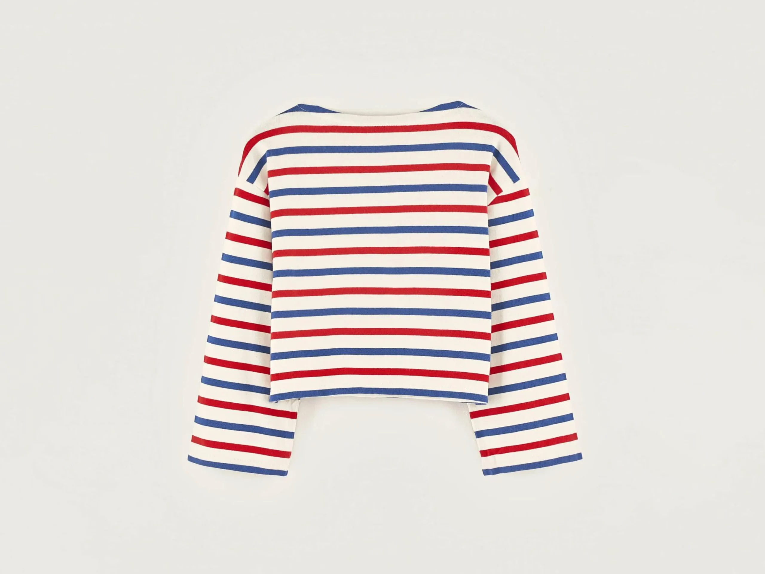 Katoenen T-shirt met lange mouwen en matrozenstrepen, straight fit.