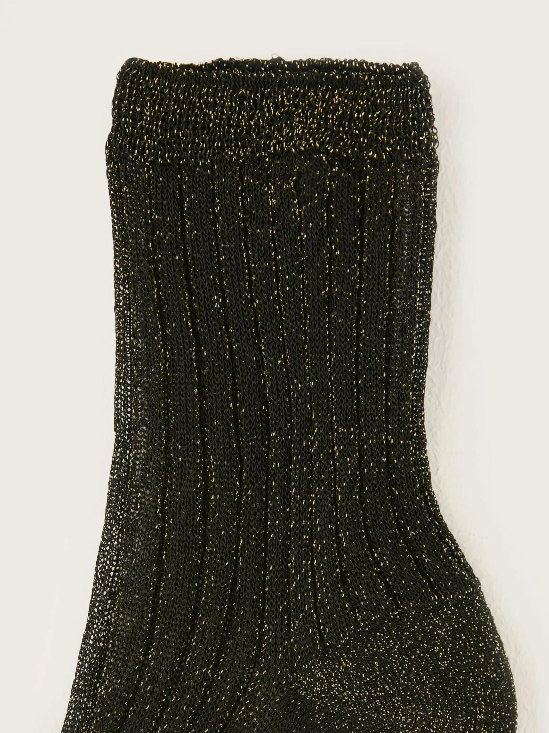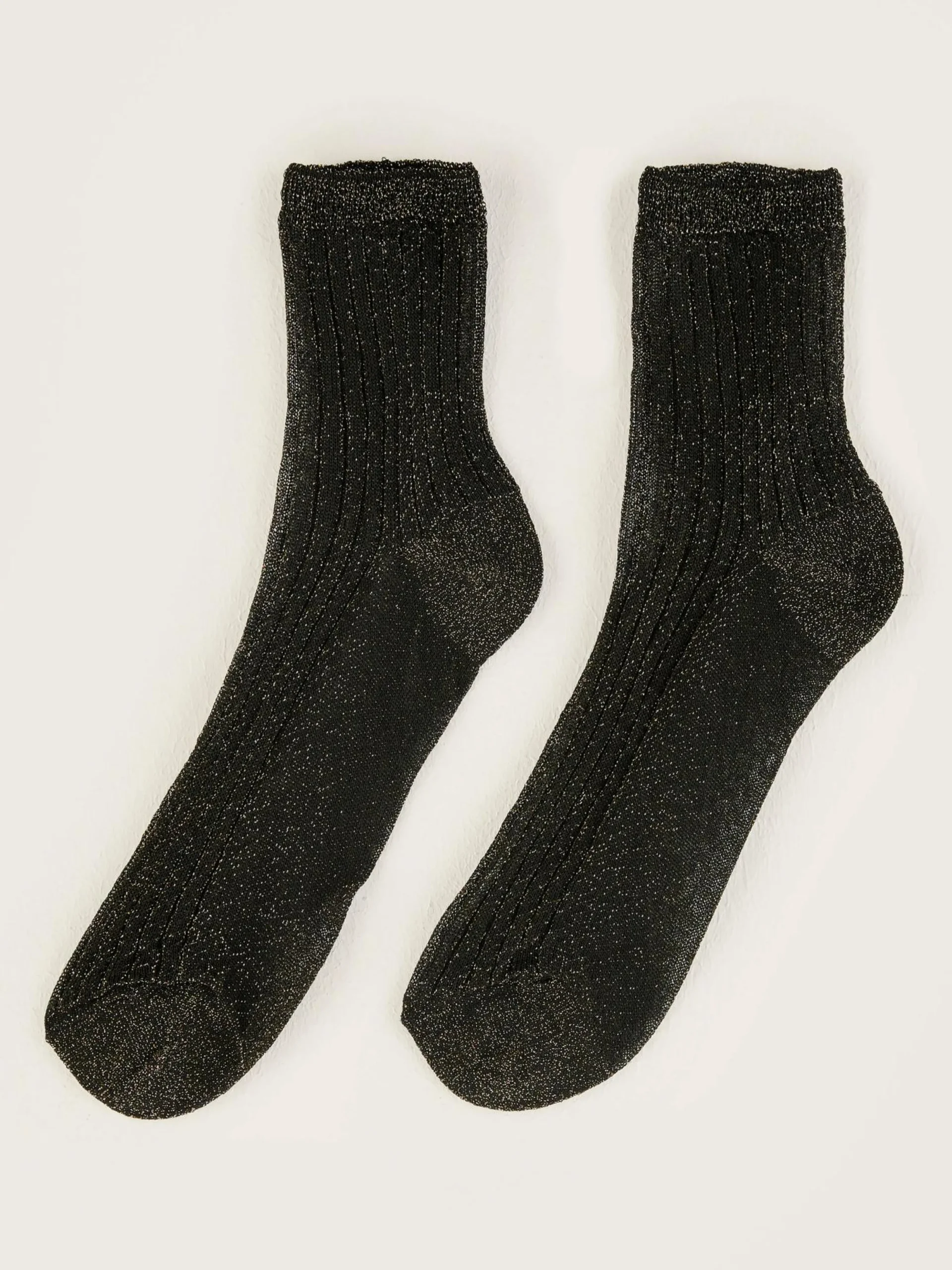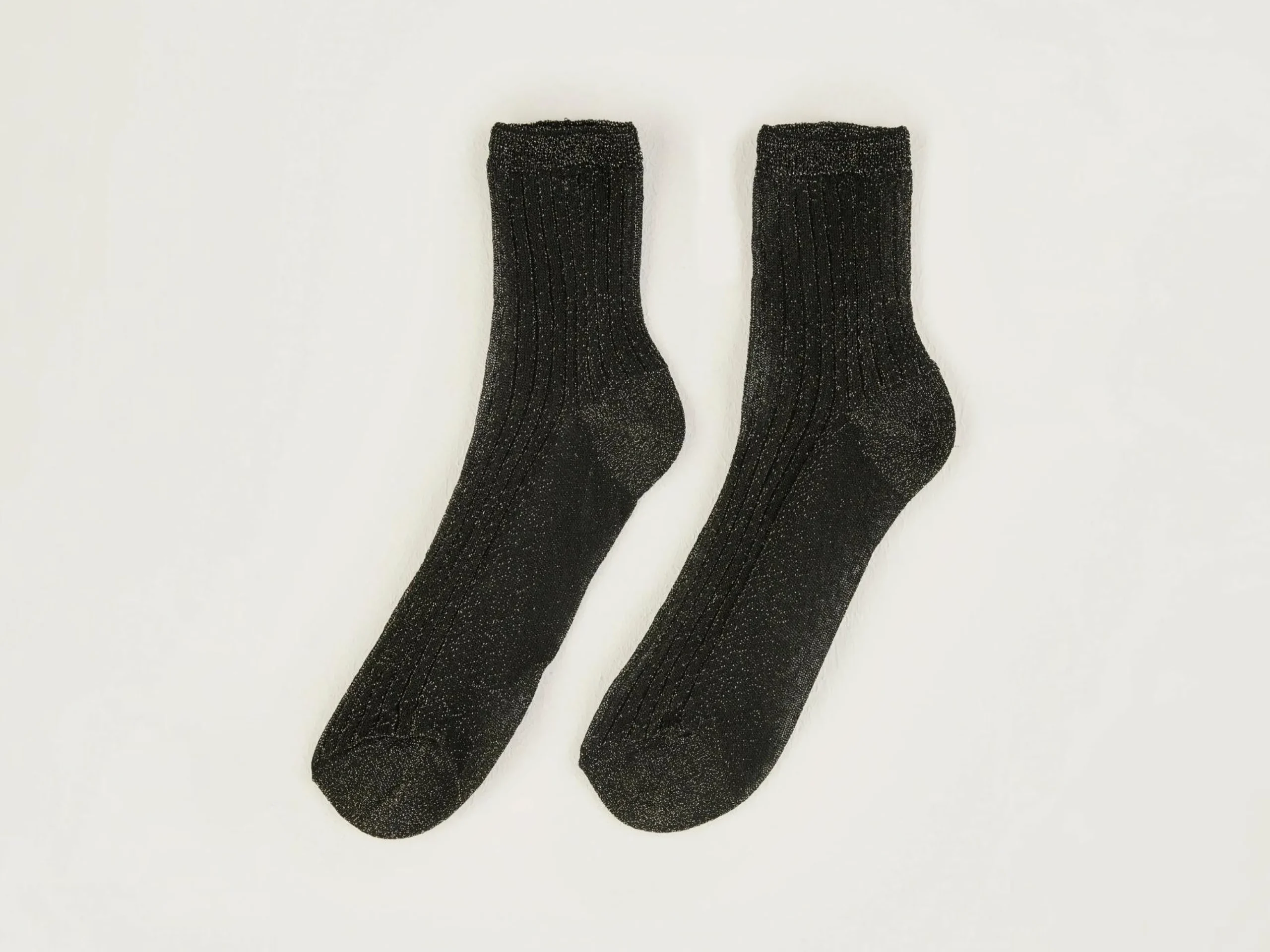 Korte sokken met een geribbelde textuur en een doorzichtige, metallic look. Een subtiel en toch speels accent aan je voeten, dat zijn ze!