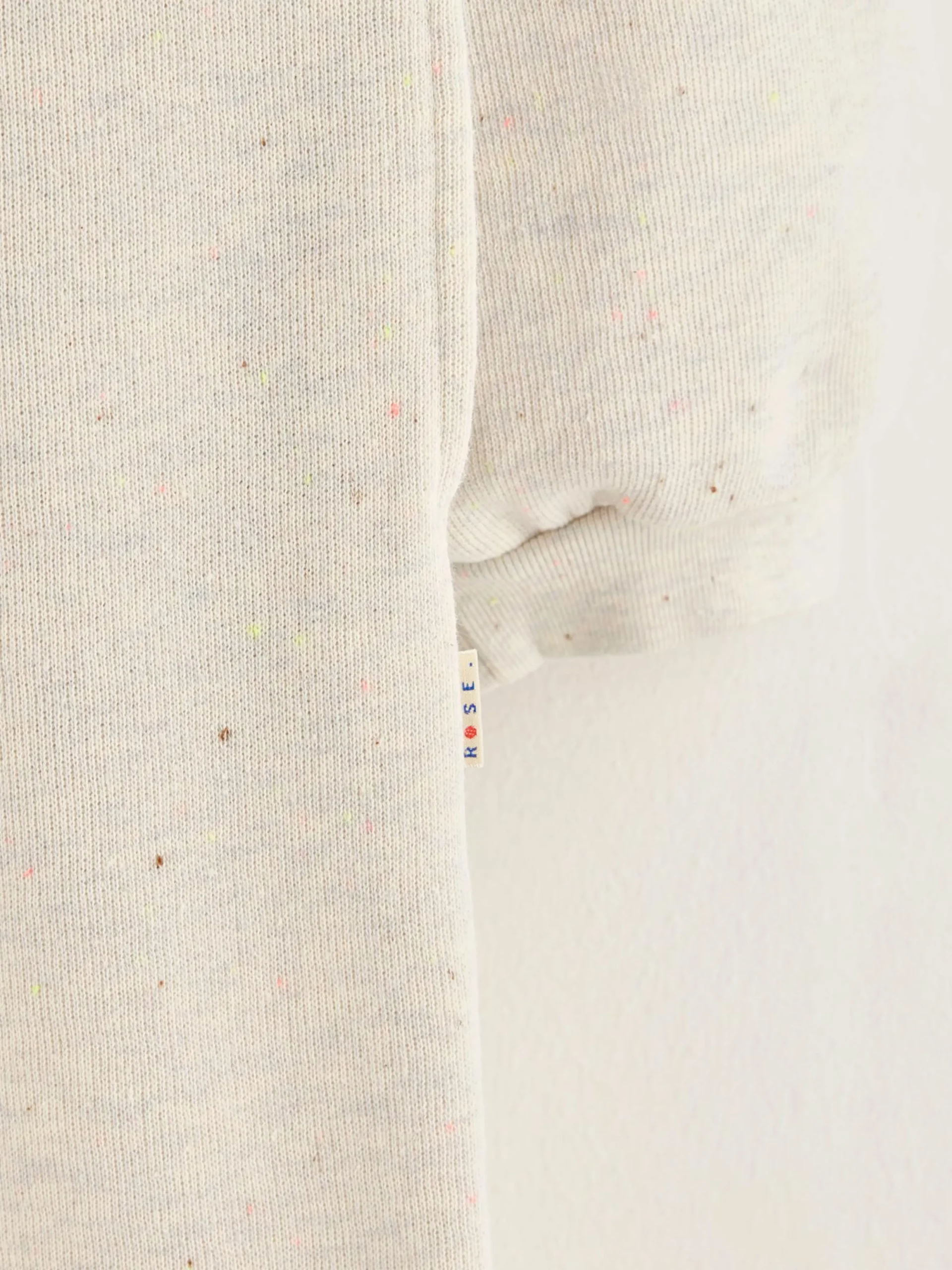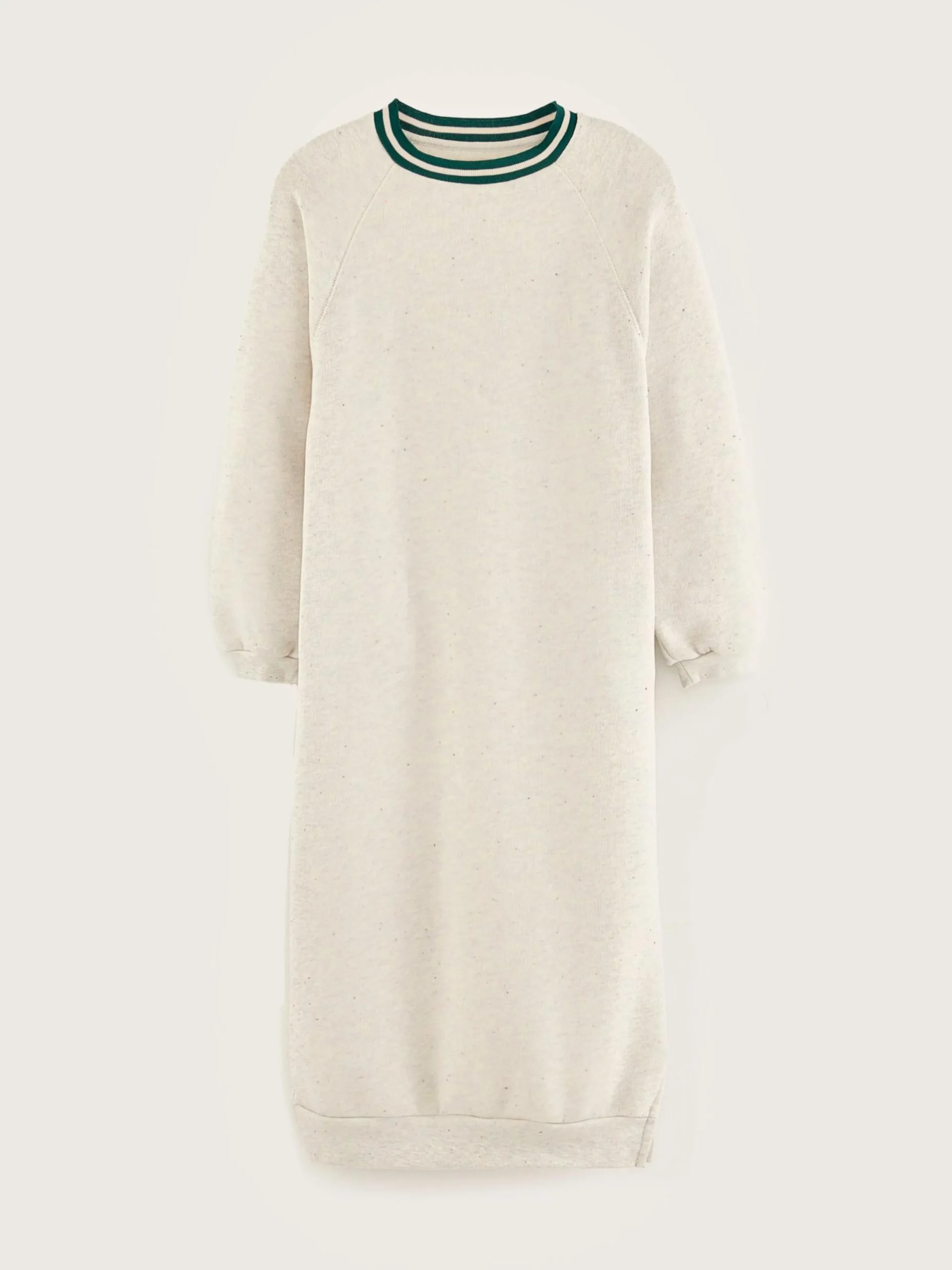 Sweatshirtjurk van heidegrijze fleecestof met kleurrijke spikkels.