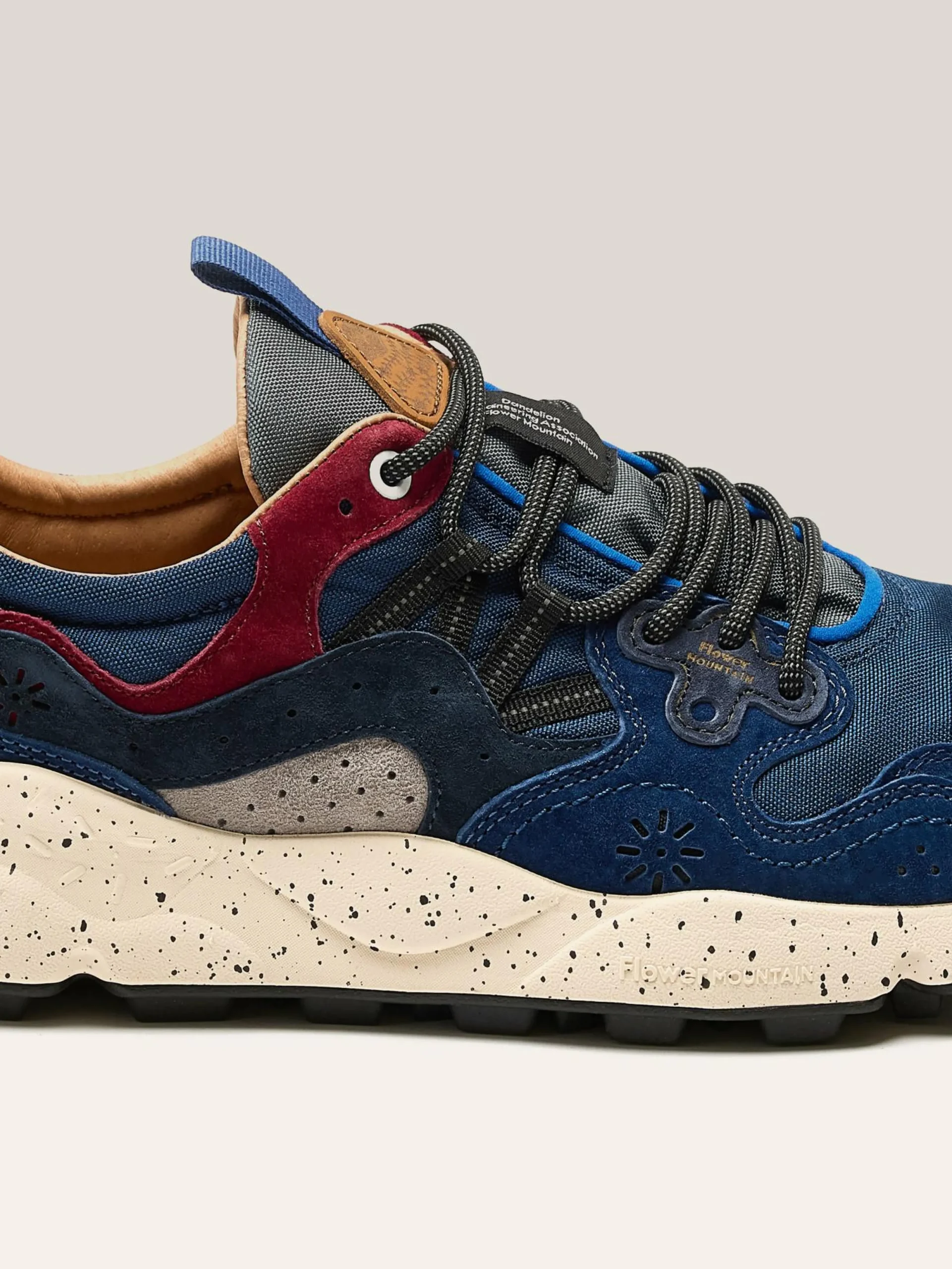 De Flower Mountain YAMANO 3 wandelschoenen hebben een bovenwerk van technisch suède en mesh, wandelveters en een ultralichte rubberen zool.