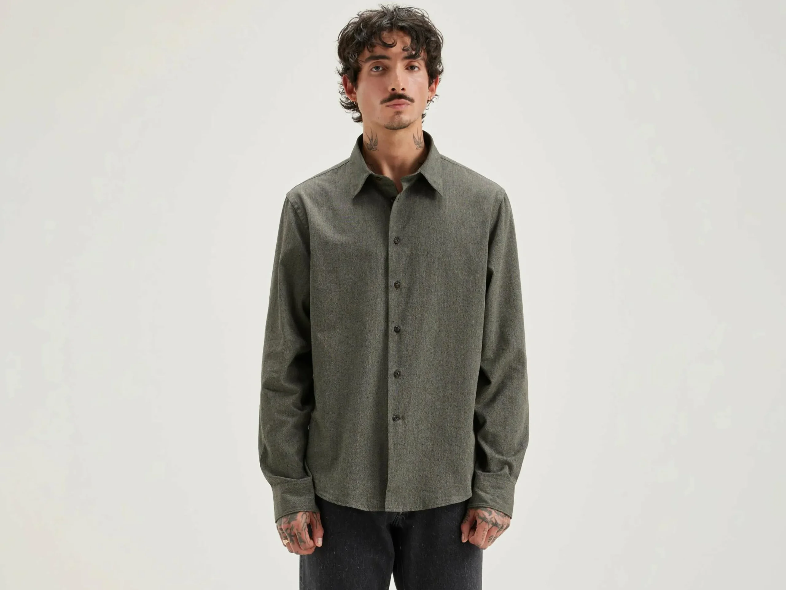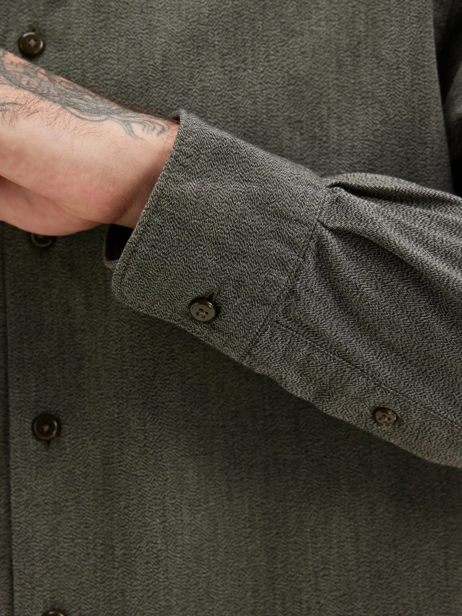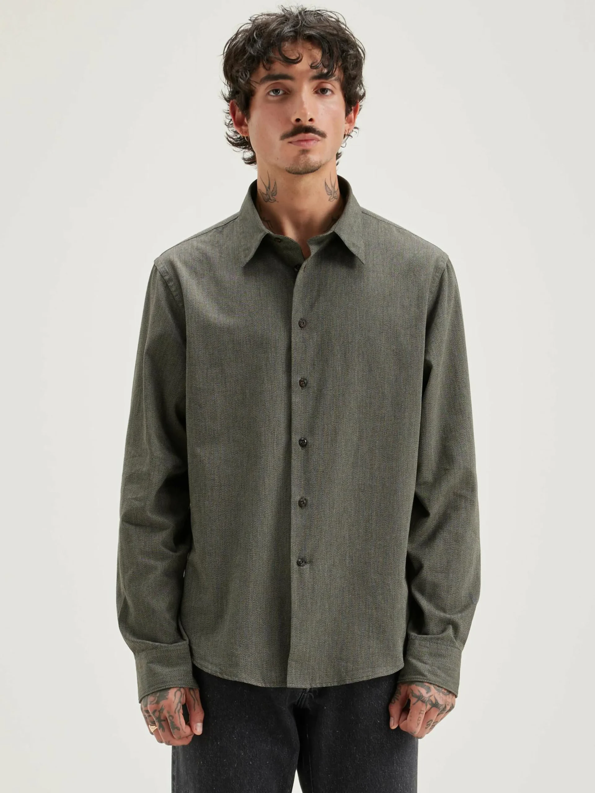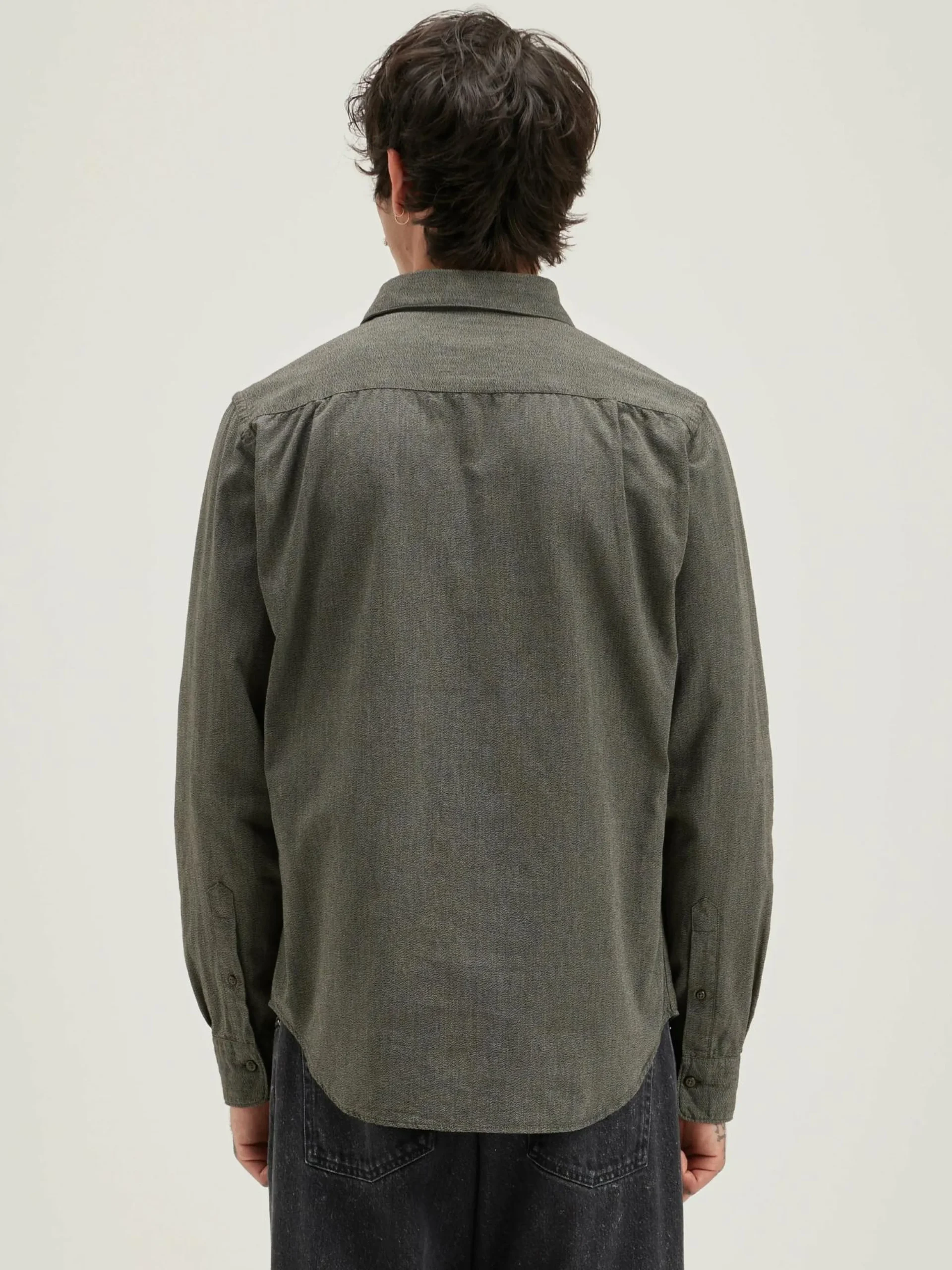Klassiek overhemd van grijs chiné popeline katoen.