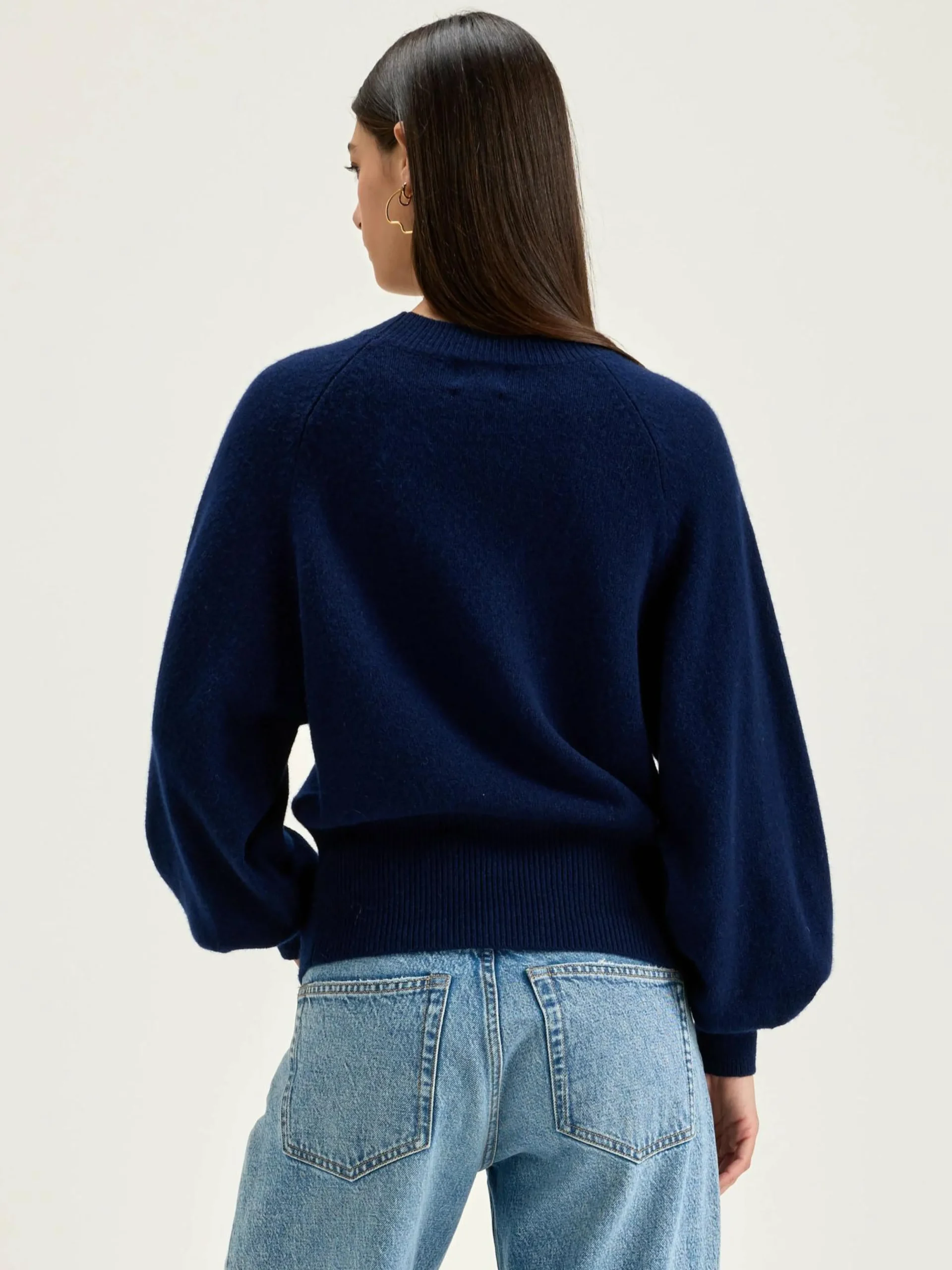 Klassieke trui met ronde hals, van marineblauw garen.