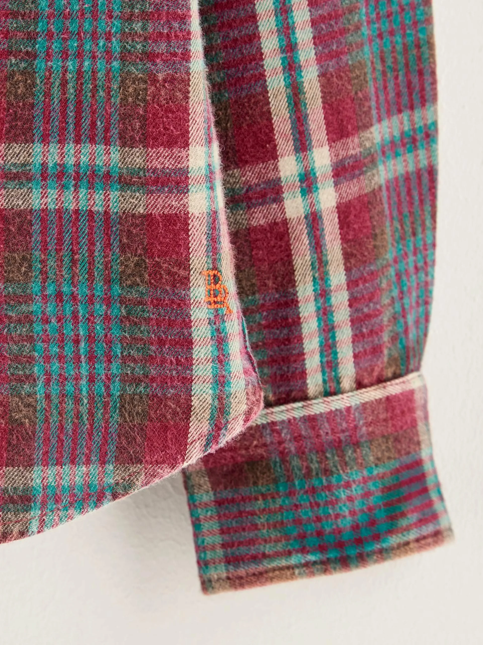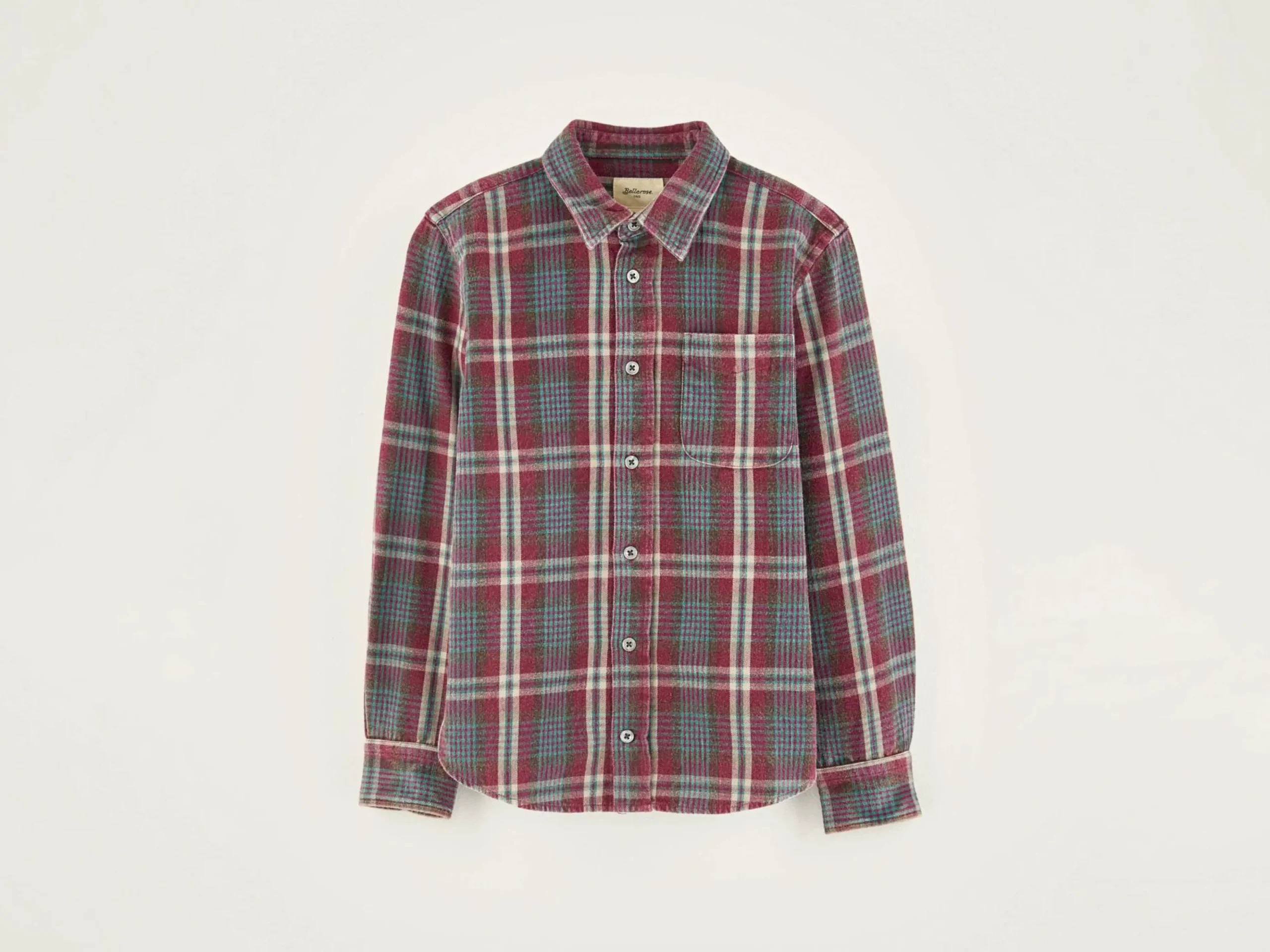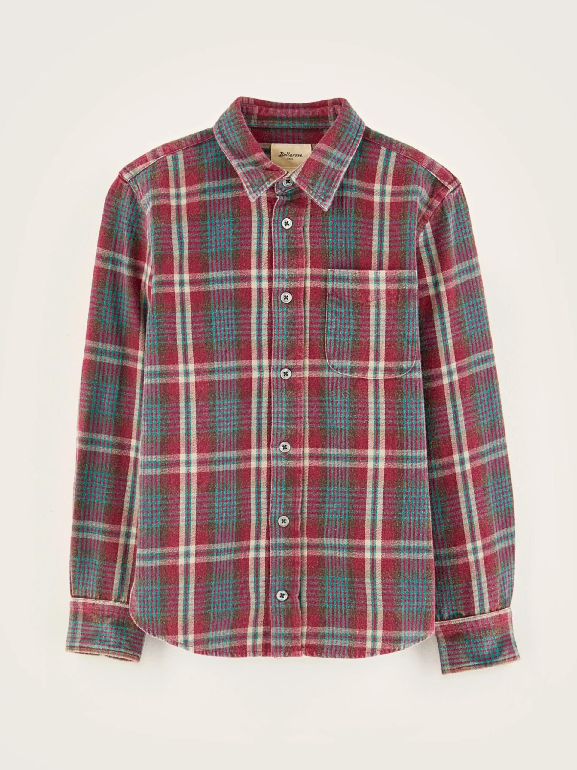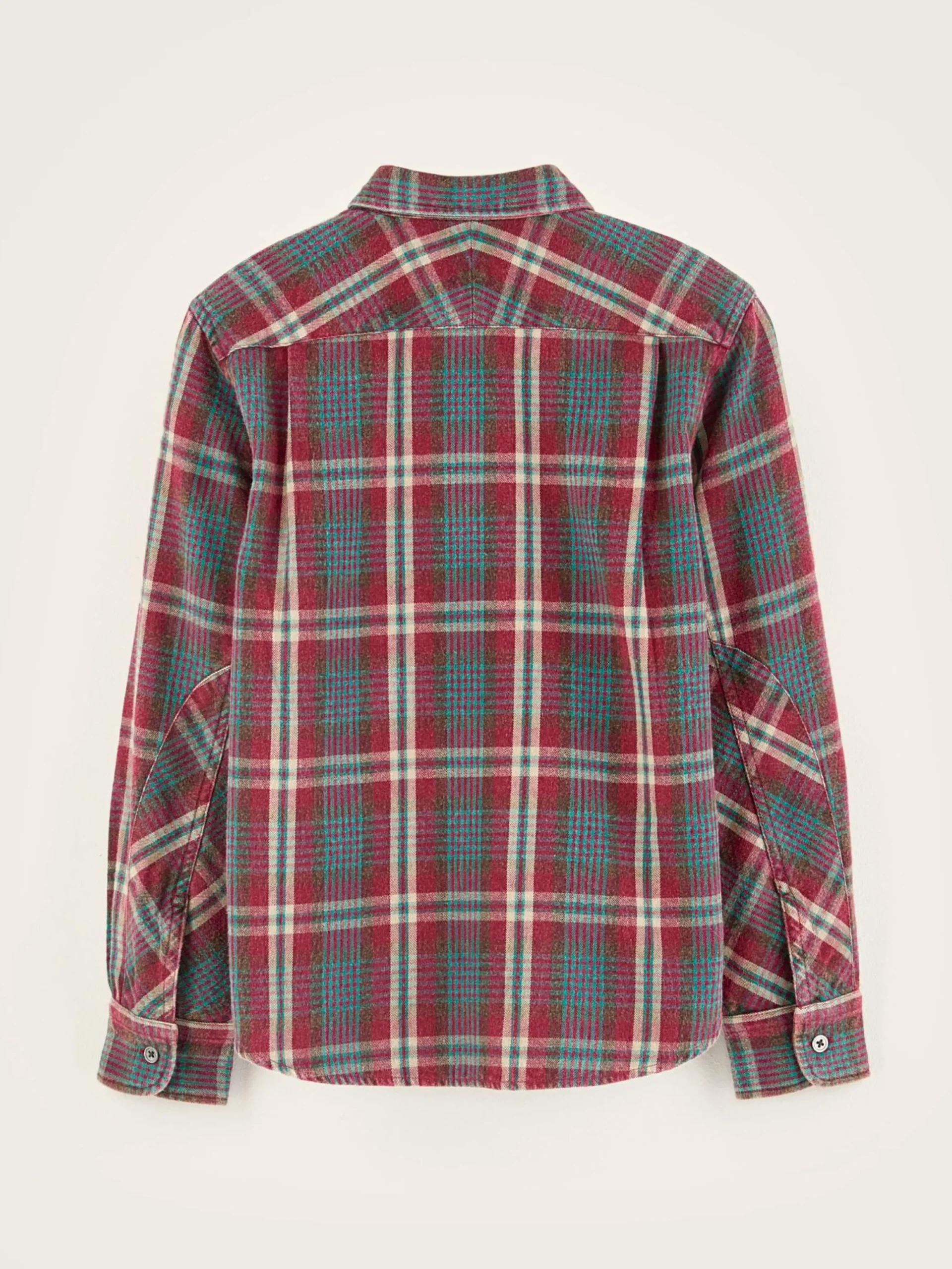 Klassiek hemd van geruit katoen, met elleboogstukken en knoopsluiting vooraan.
