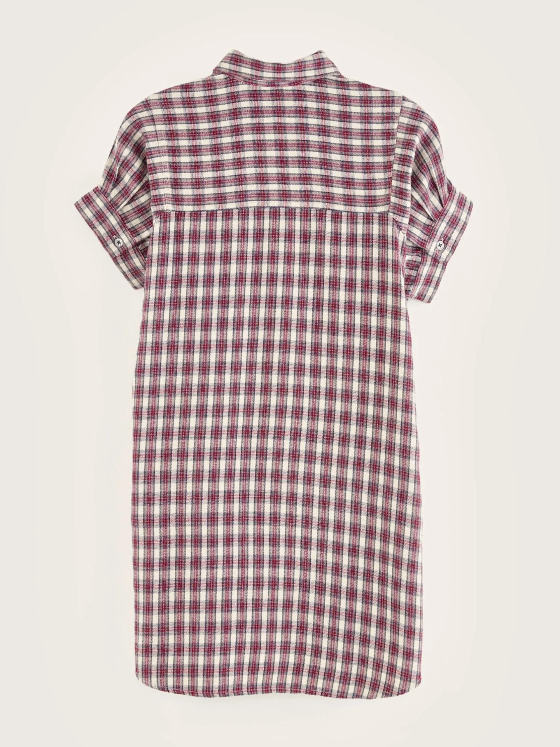 Minihemdjurk met opgerolde mouwen in geborstelde katoen met wijnrood en wit ruiten.