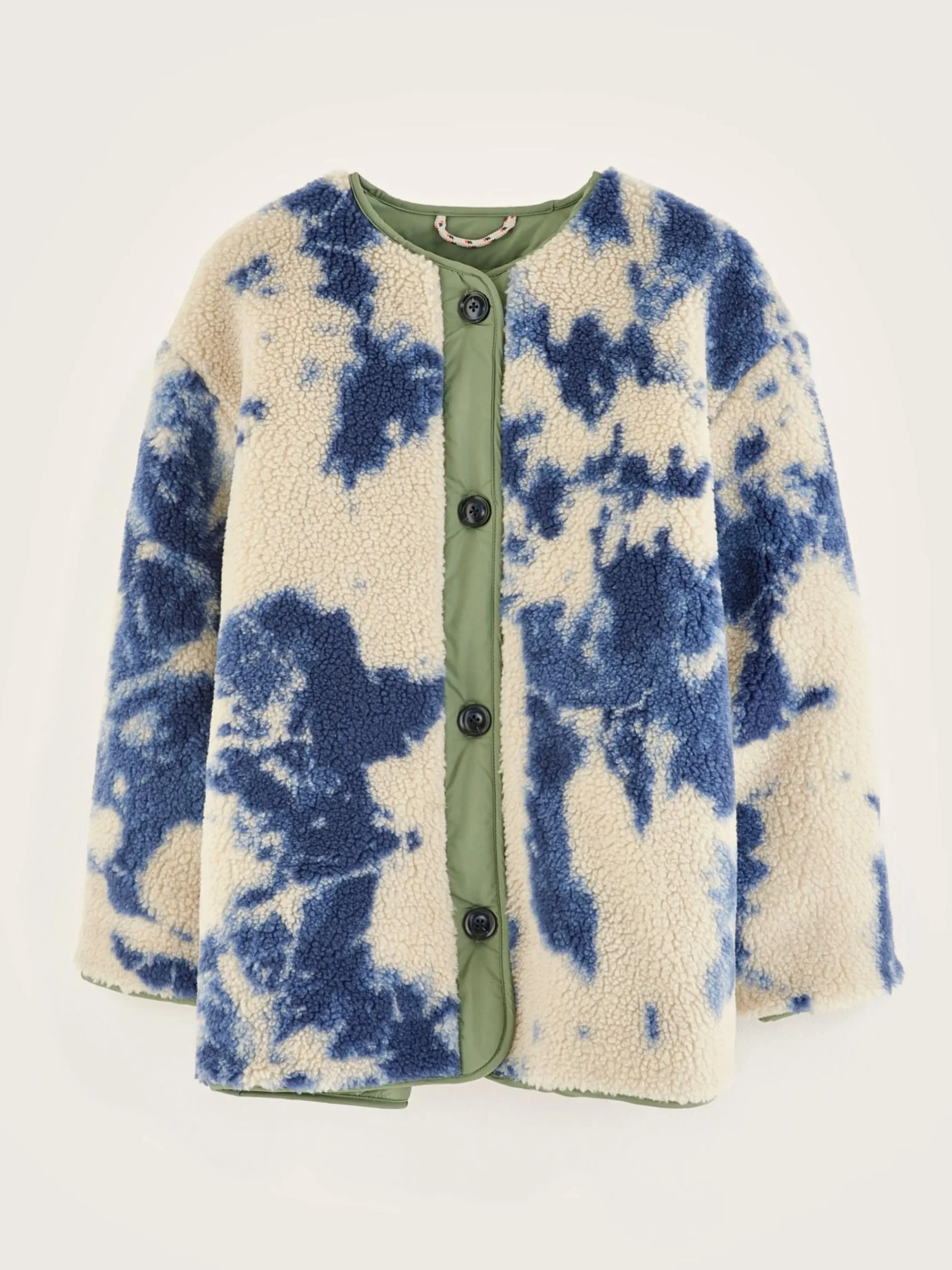 Omkeerbare oversizede jas van tie dye teddystof en met gevoerde look.
