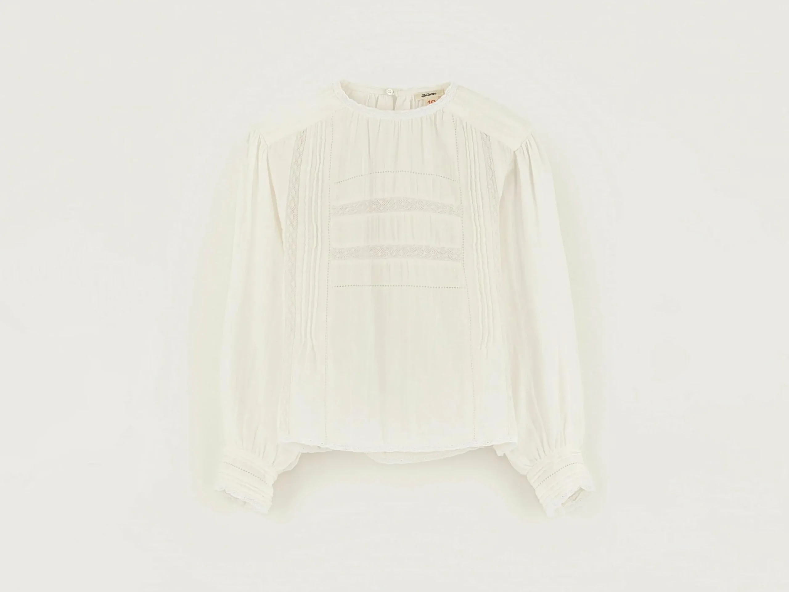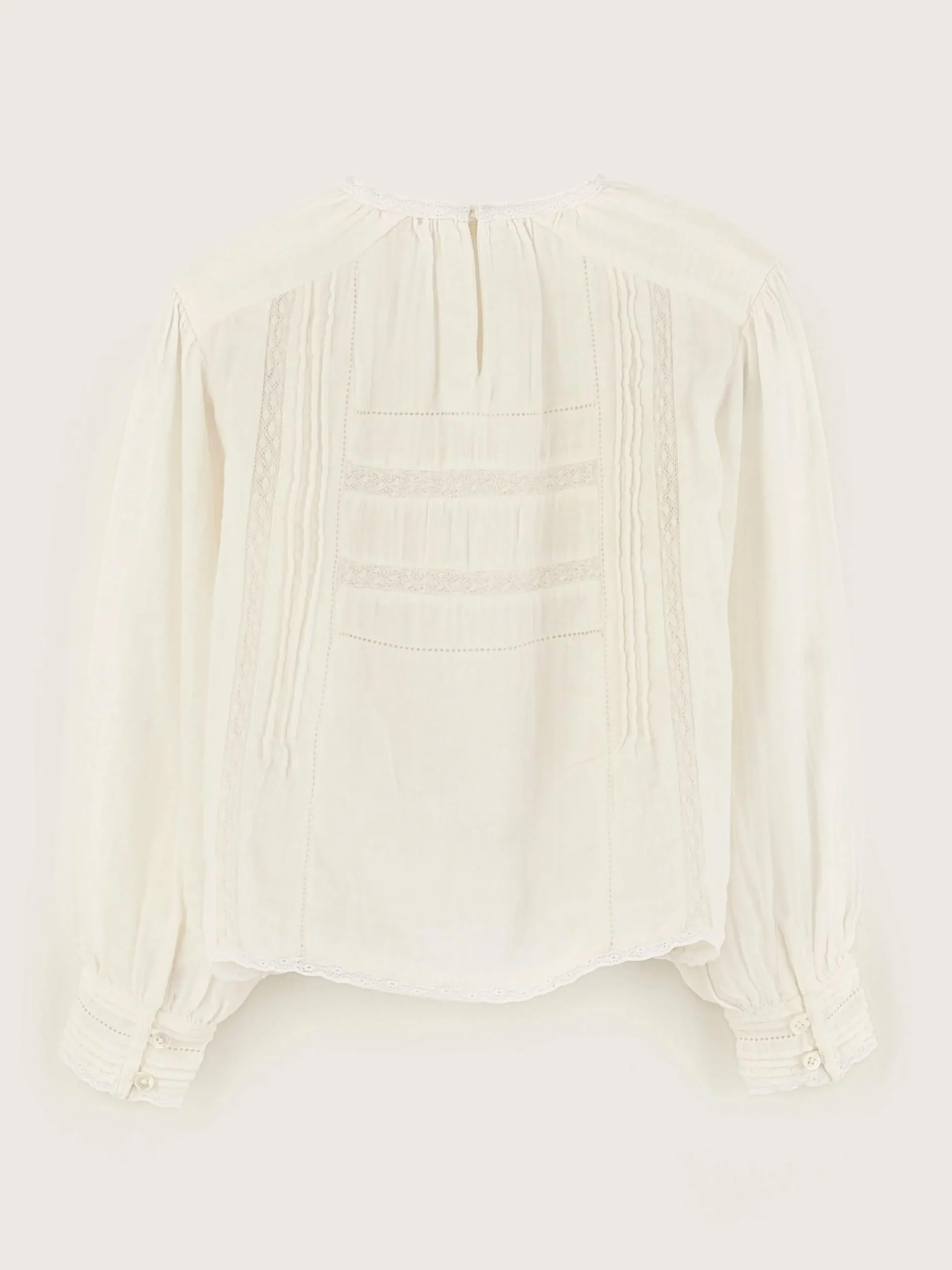 Romantische ecru blouse van katoen, met ingezette kanten details.