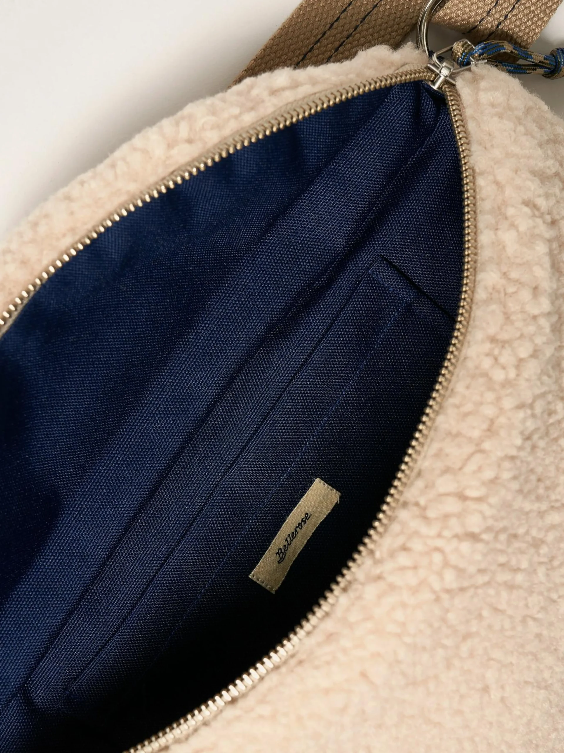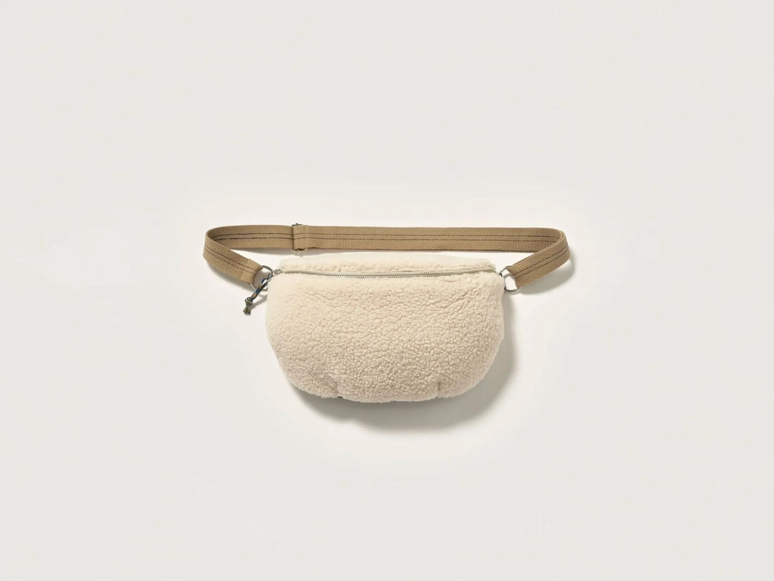 Heuptas met rits vooraan, in ecru teddy.