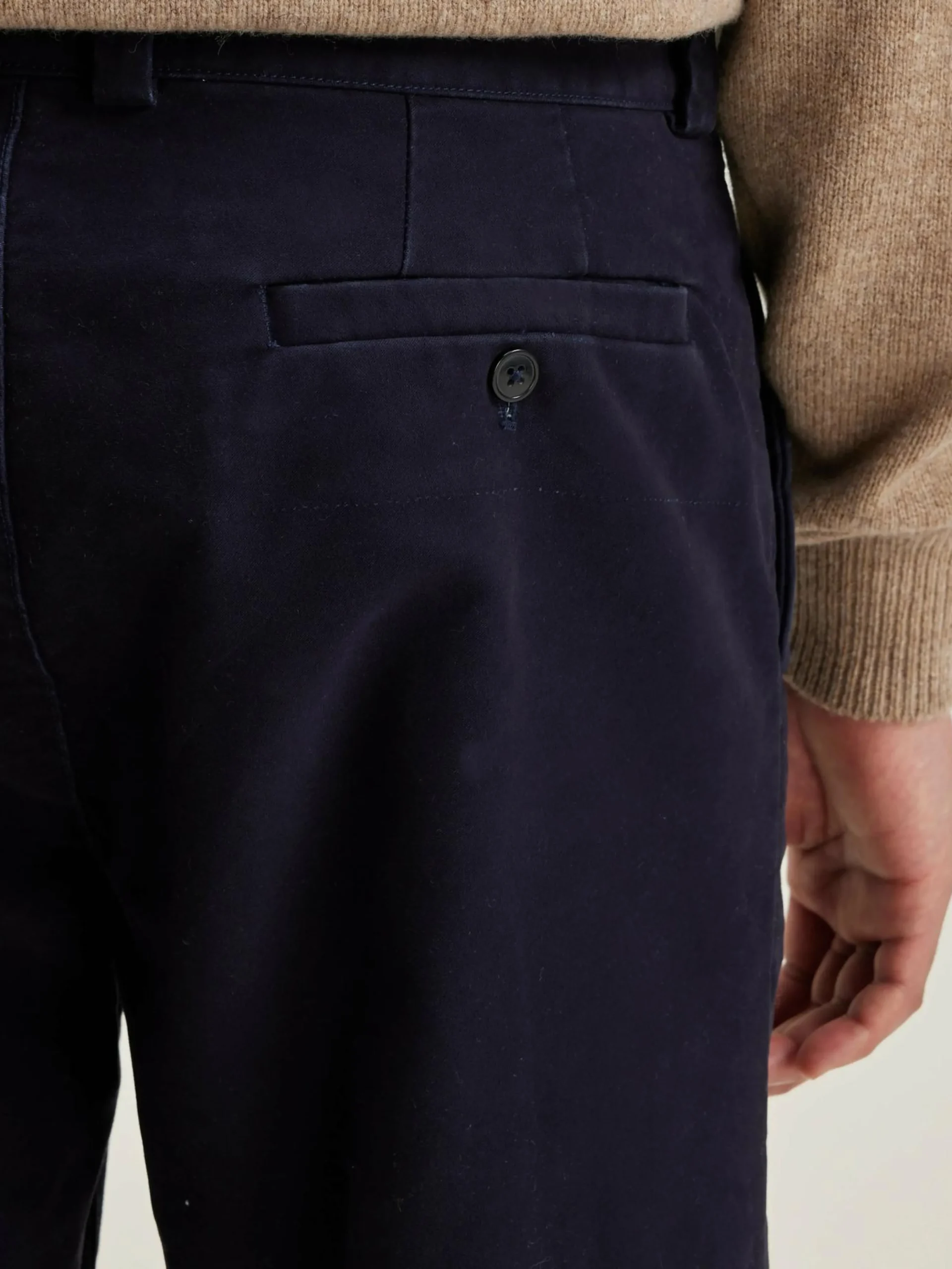 Minimalistische broek met een normale taille en rechte pijpen, van zwartblauw moleskin katoen.