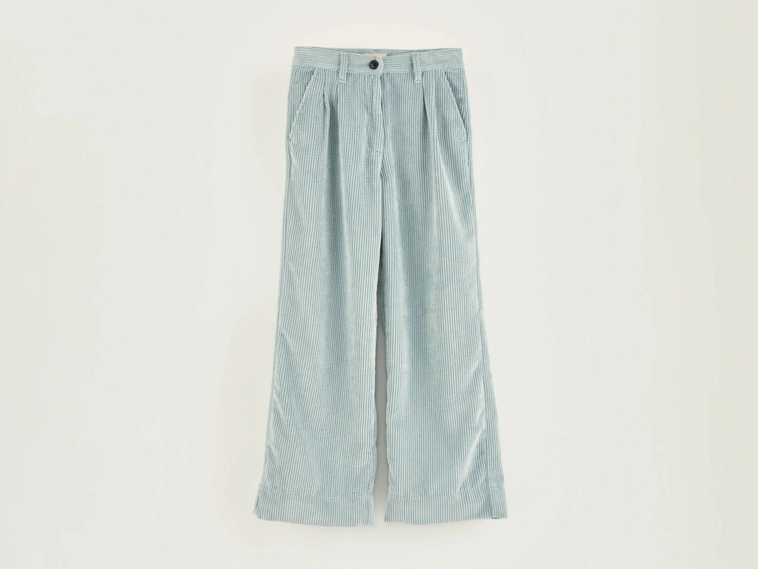 Blauwe broek met tailored fit en hoge taille, van corduroy met brede rib.