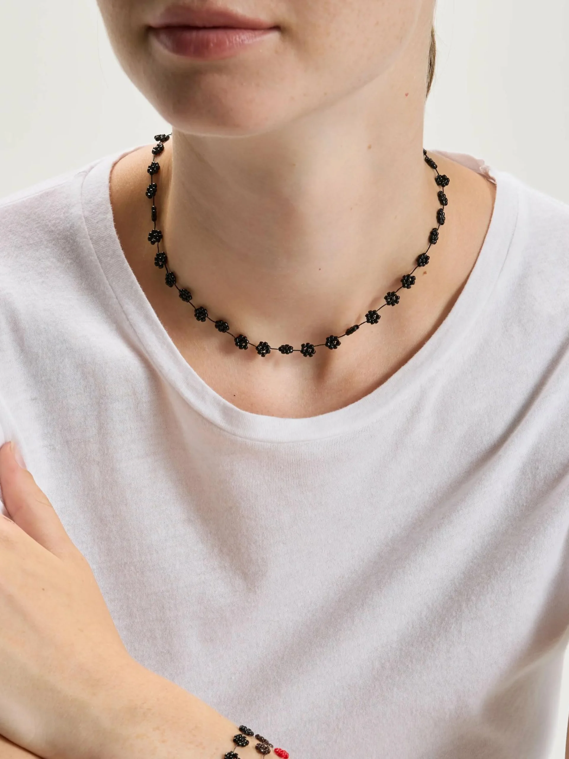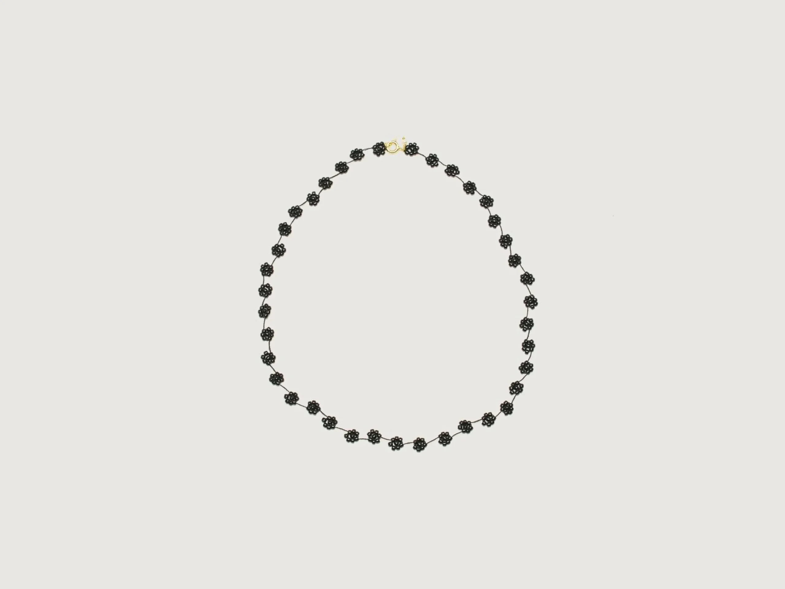 De prachtige Labro Fiori halsketting heeft glaskralen op een duurzaam nylondraad met een stevige sluiting.