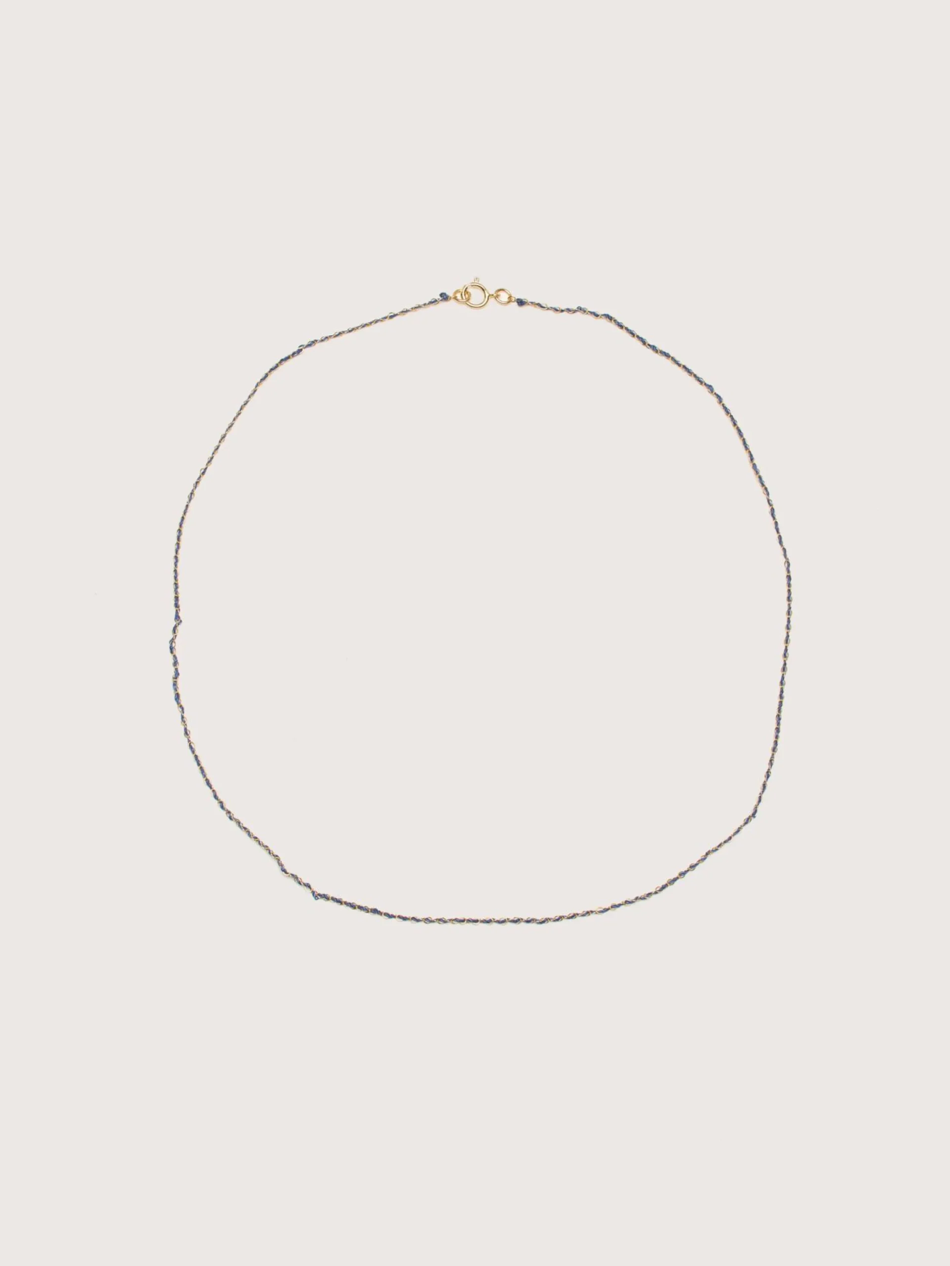 De Maison Mönik Beaute ketting is een delicaat weefsel van zijde en gouddraad.