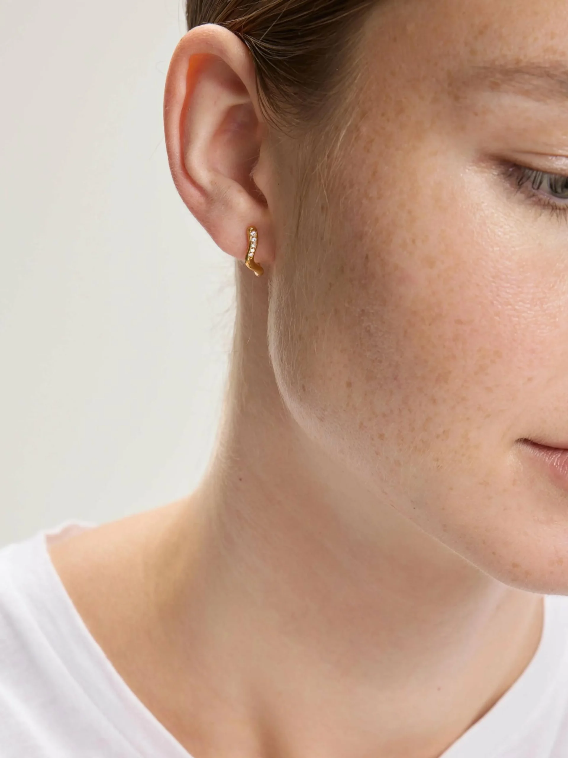 De Yasmin 8 Huggie oorbel van Maria Black is een 18k verguld sieraad versierd met witte zirkonia steentjes die passen bij je favoriete sieraden.