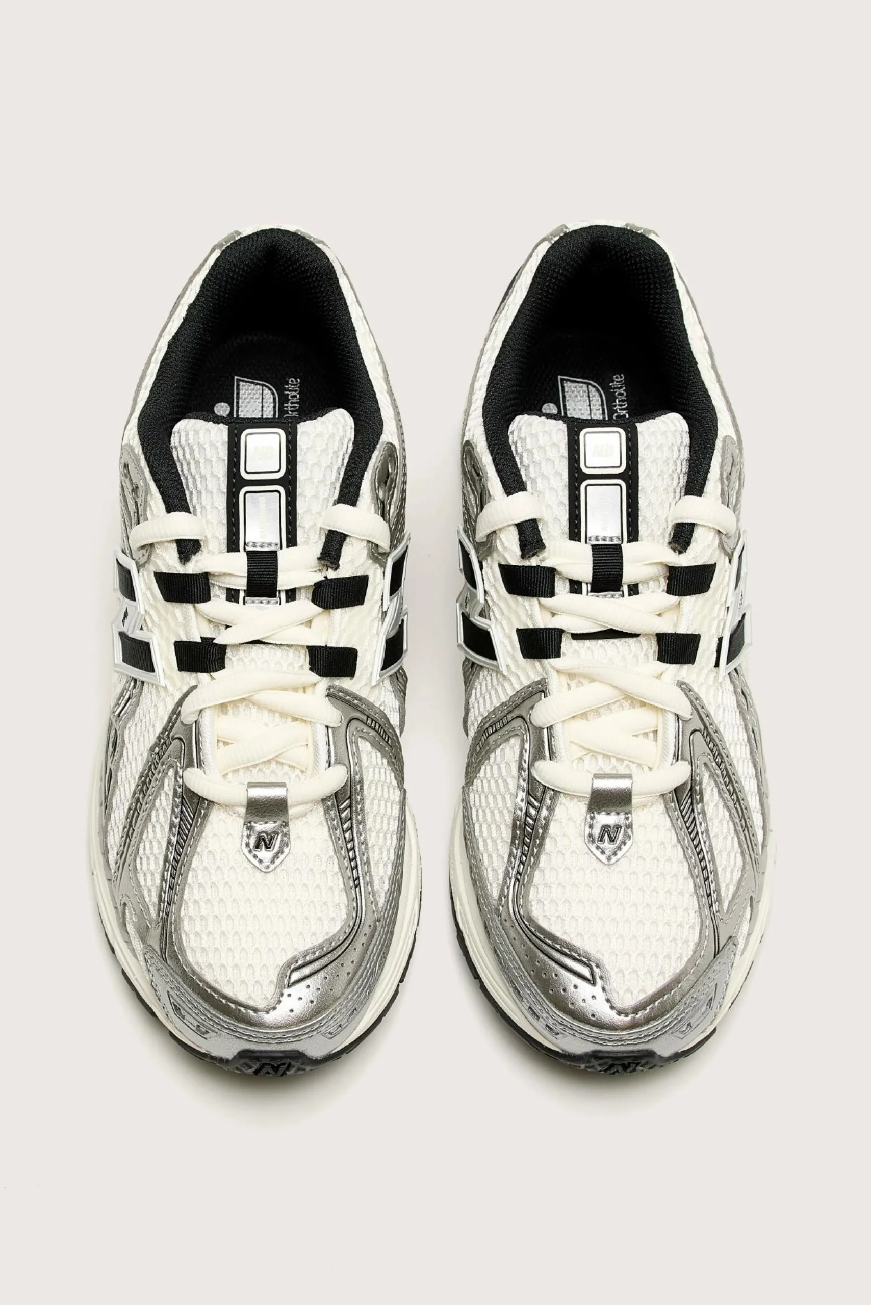 De New Balance 1906R hardloopschoenen hebben een bovenwerk van mesh met synthetische overlays en een gespecialiseerde, dempende middenzool en hiel.