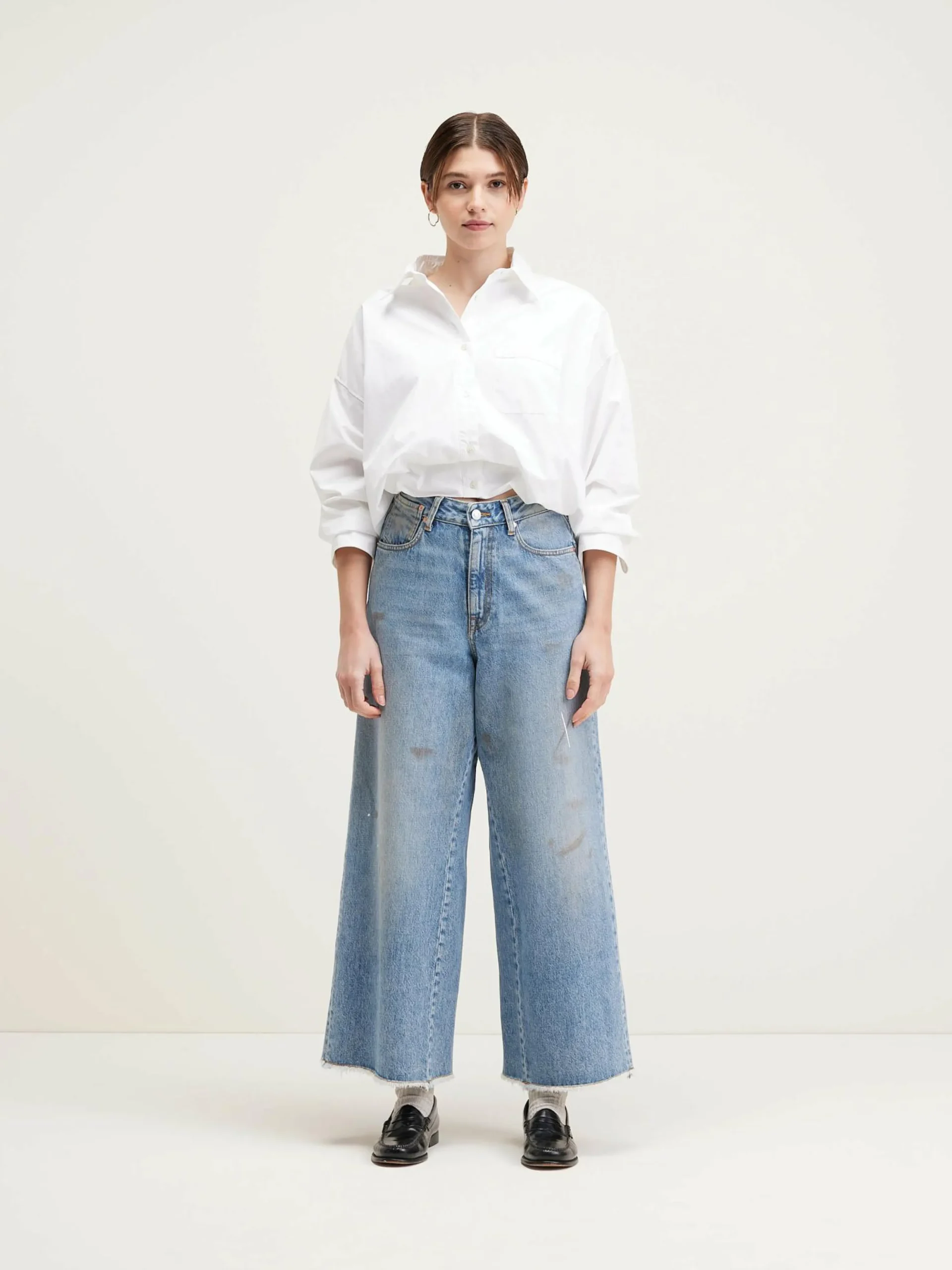 High-waist cropped jeans met brede pijpen, van vintage lichtblauw denim.