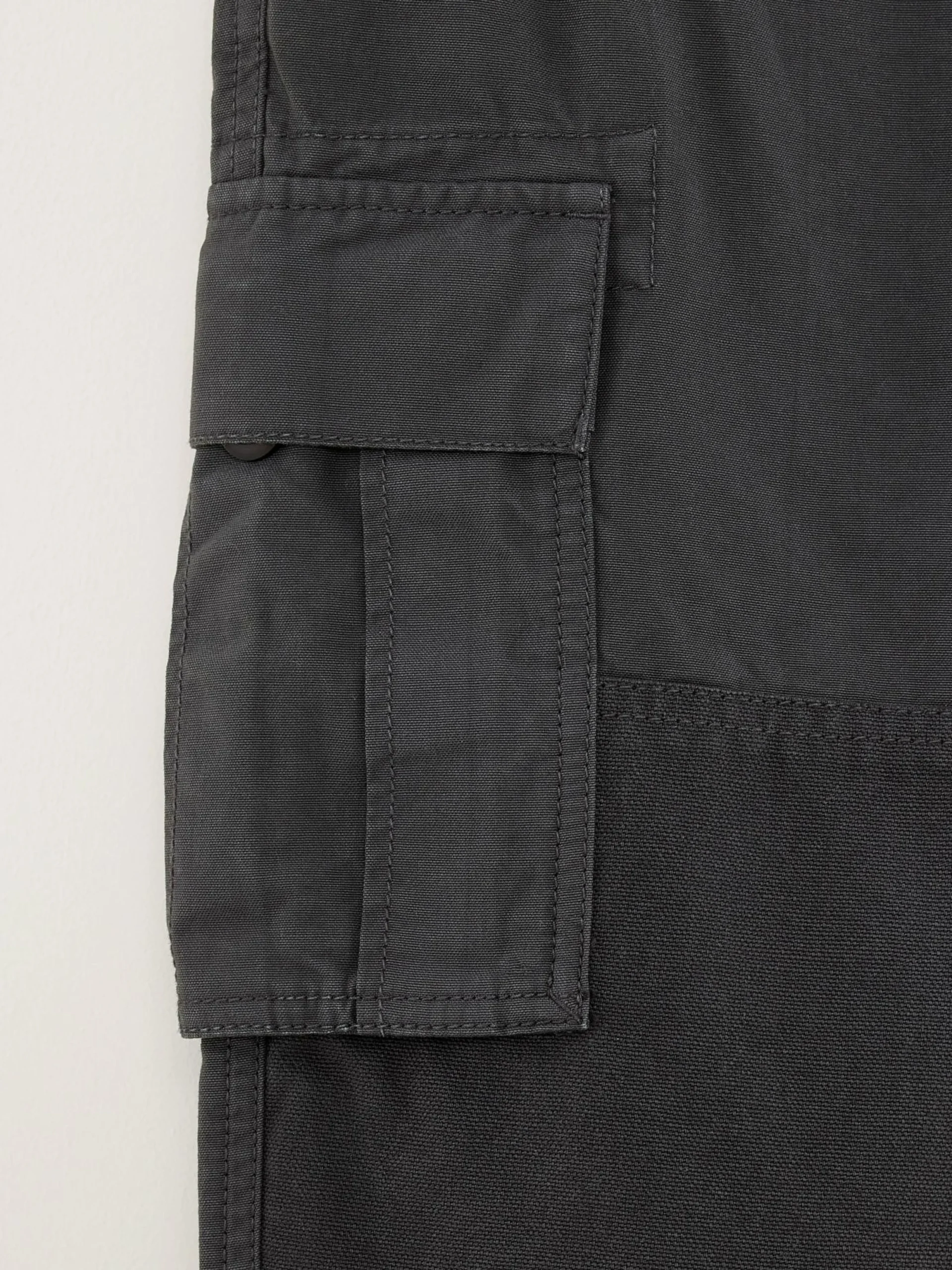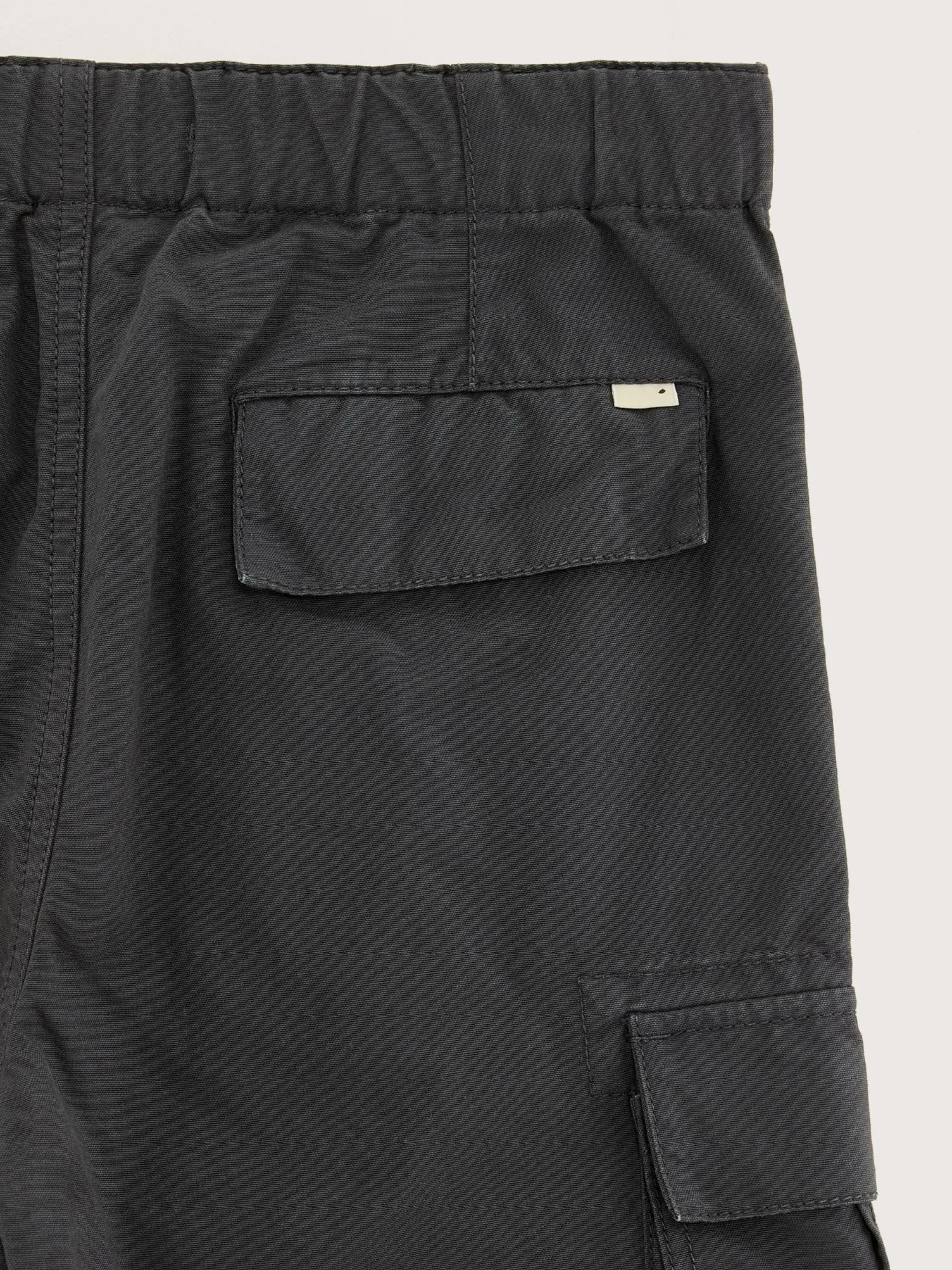 Relaxede zwarte cargobroek met wijde pijpen, van ripstop katoen.