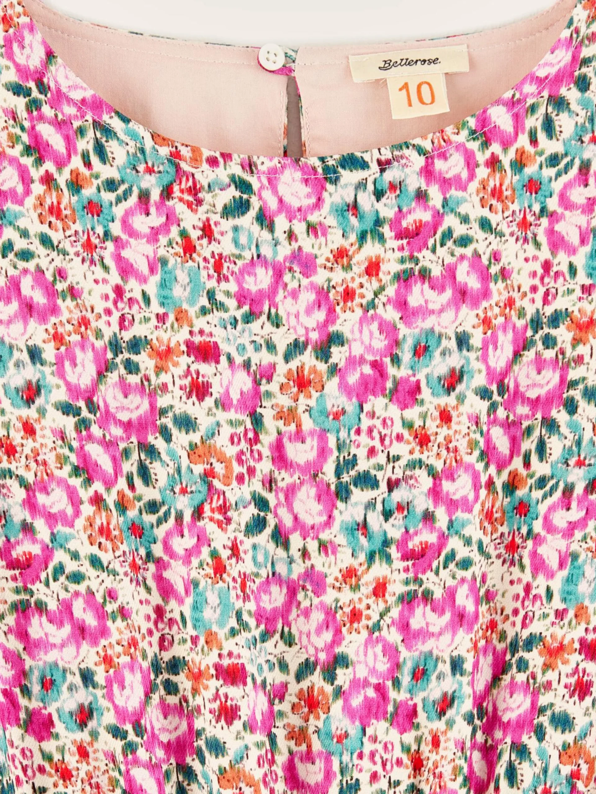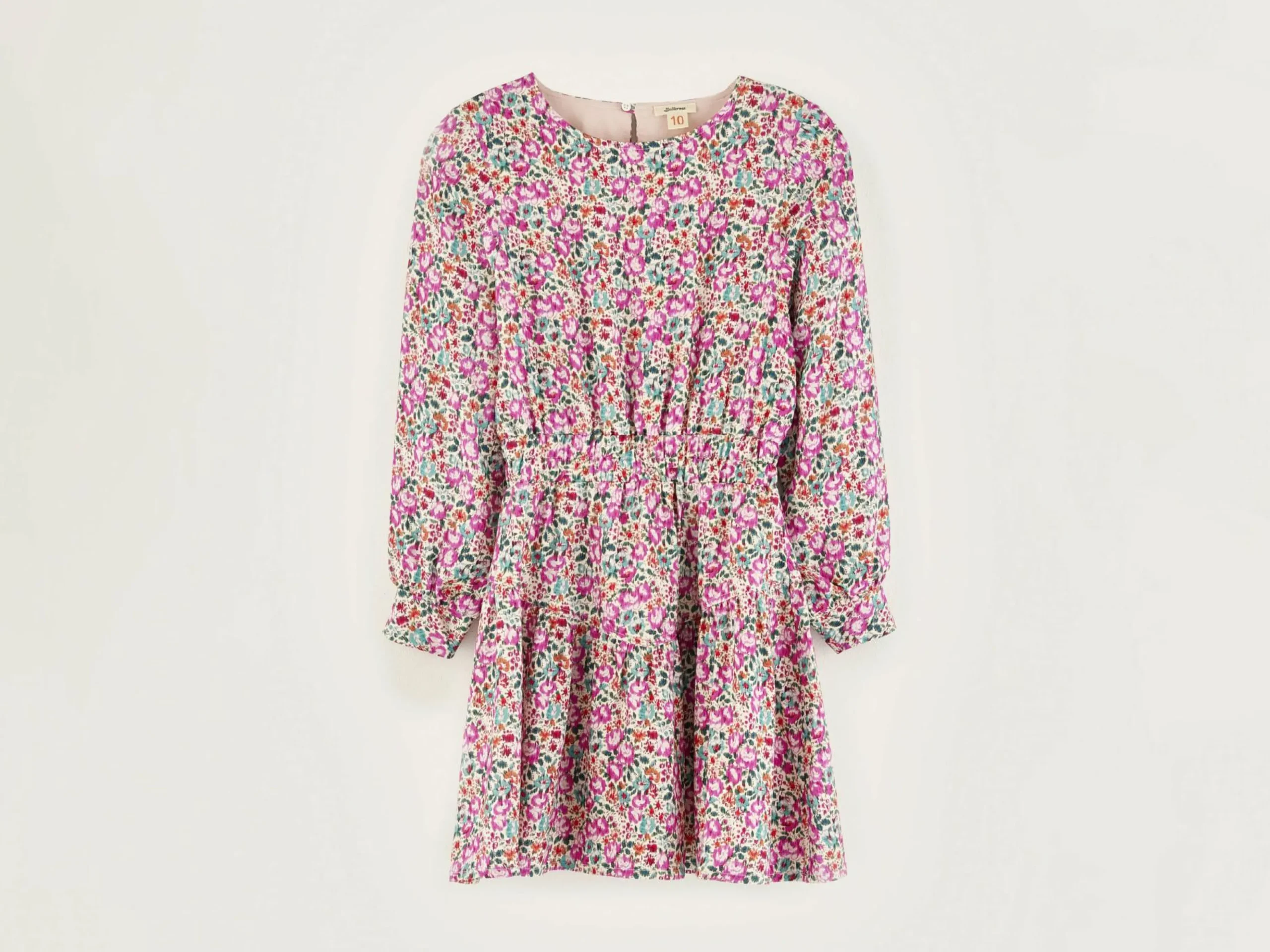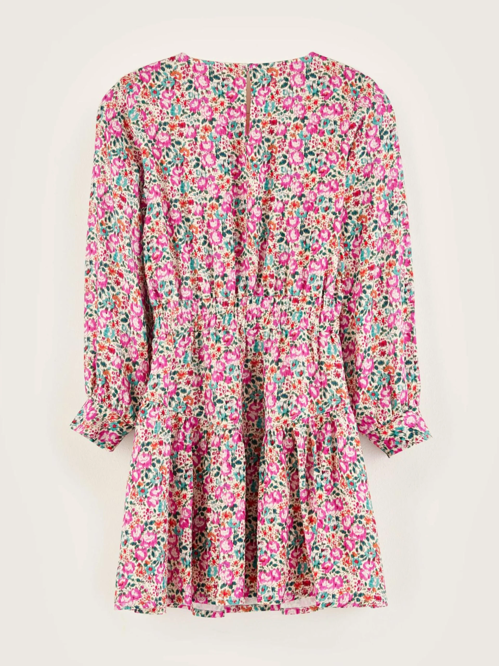 Mini-jurk met lange mouwen, van viscose en bedrukt met bloemenprint.