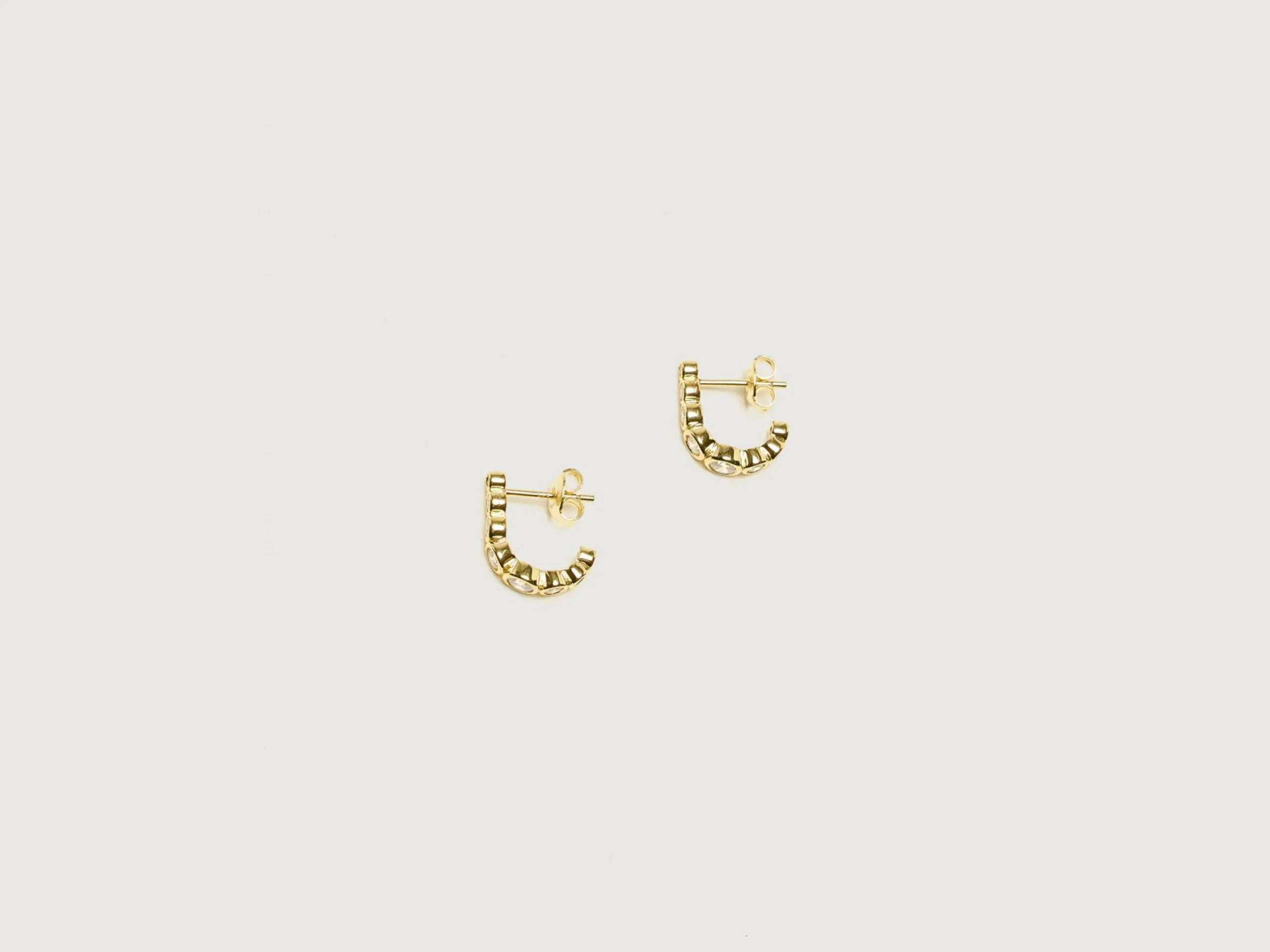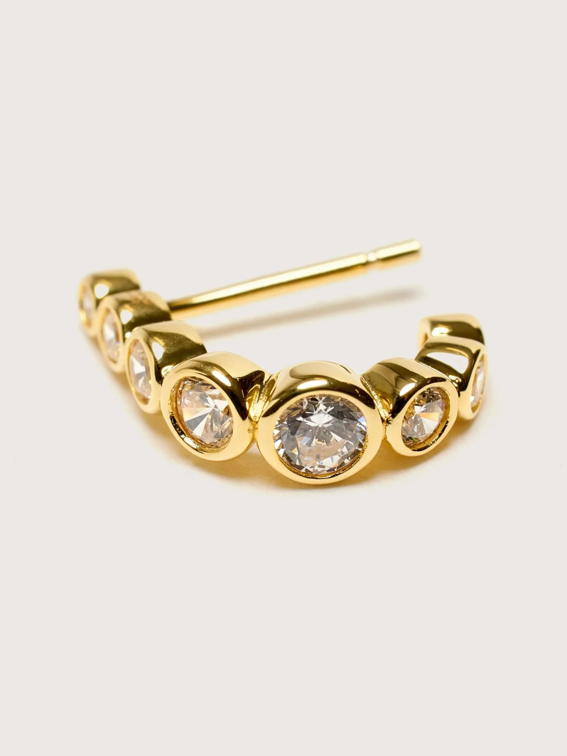 De RAGBAG Odette Oorringen zijn vervaardigd uit 18k goudgeplateerd sterling zilver met een zwevende witte zirconia steen.