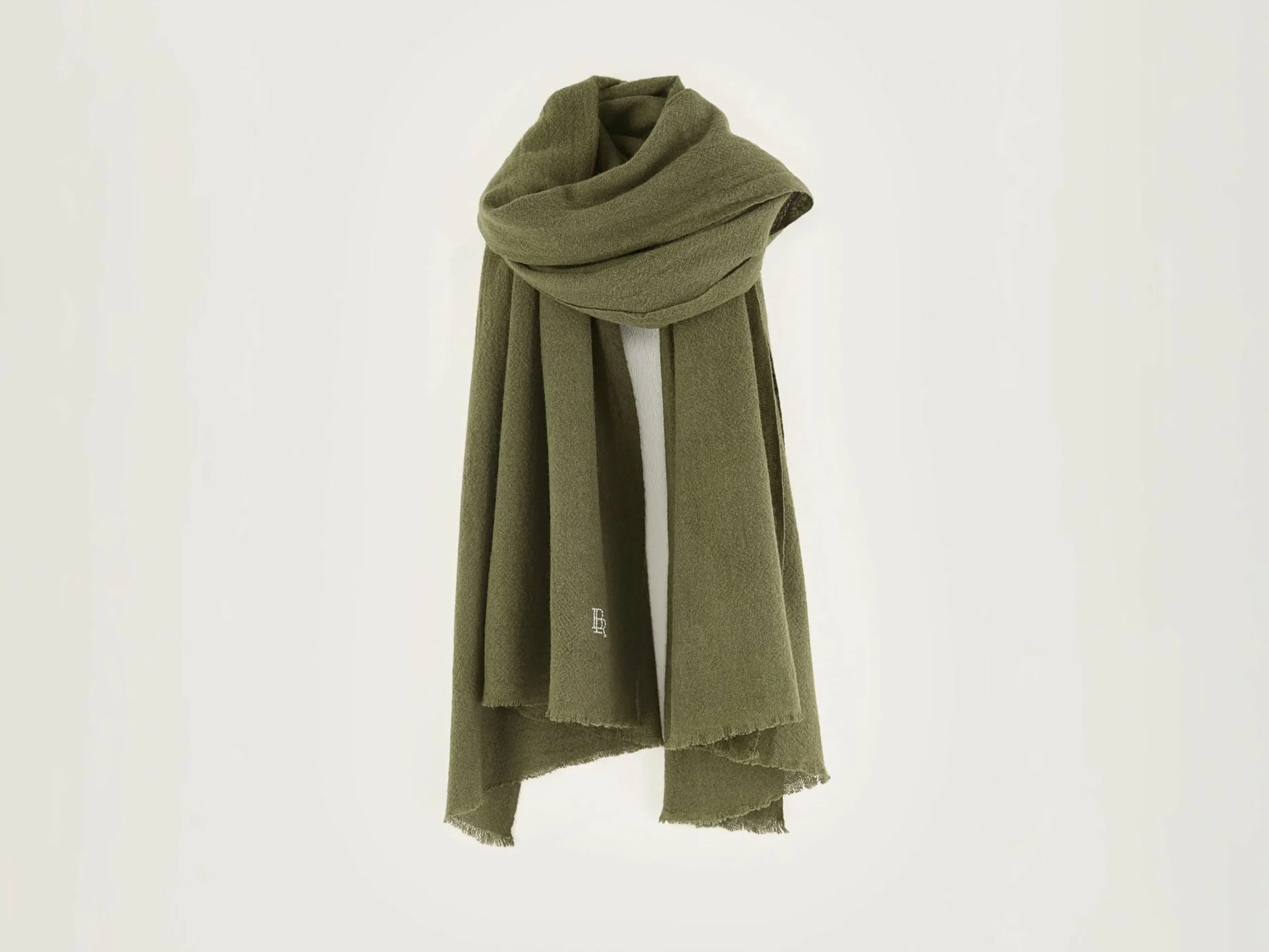 Zachte sjaal in kakigroen, die zowel warmte als stijl biedt voor de koelere dagen.