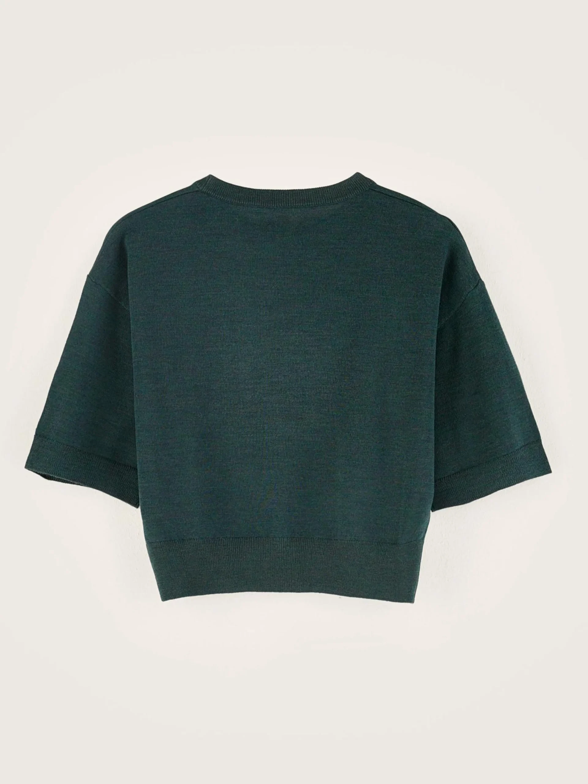 Flesgroene, cropped trui met korte mouwen, van merinowol.