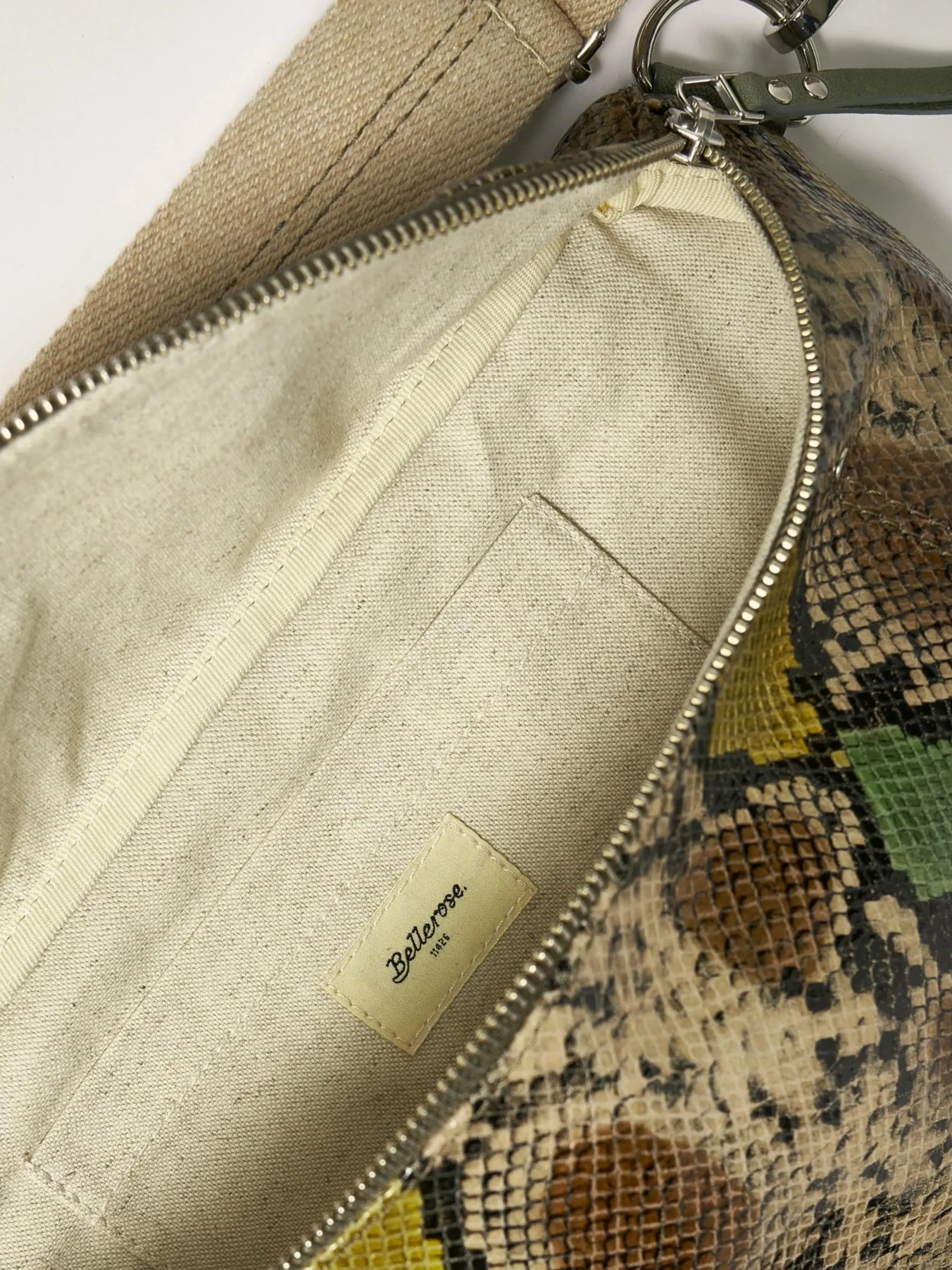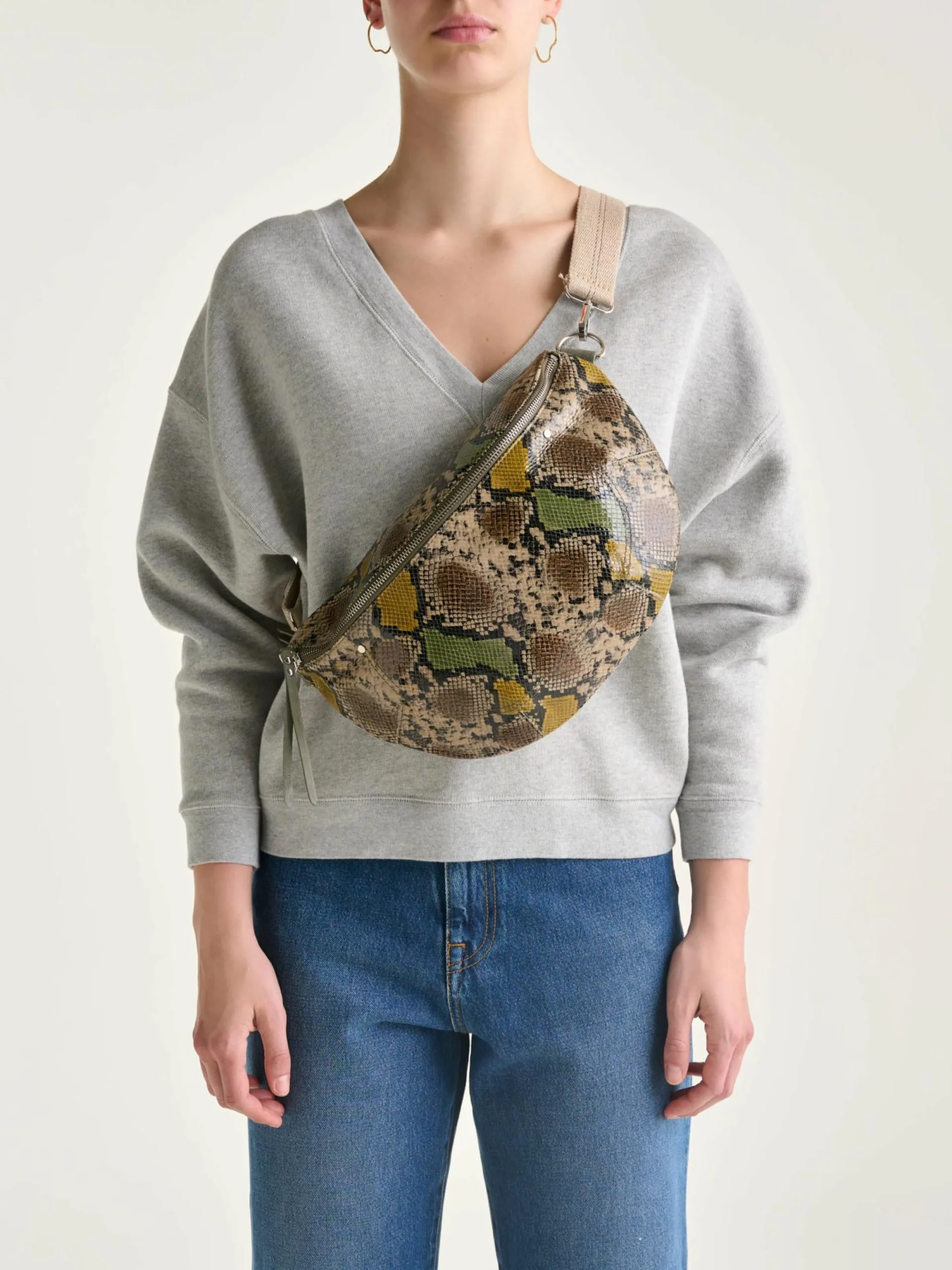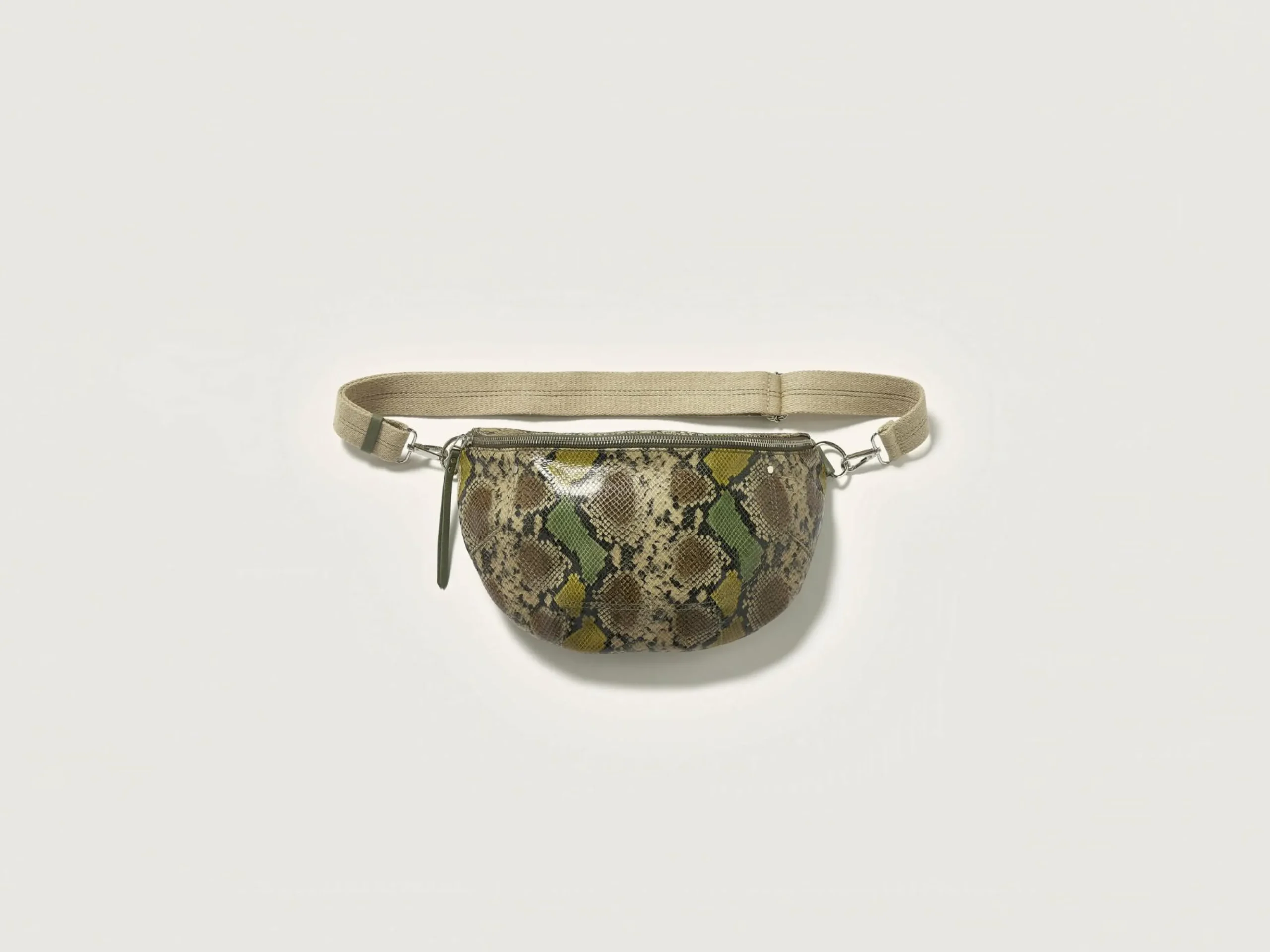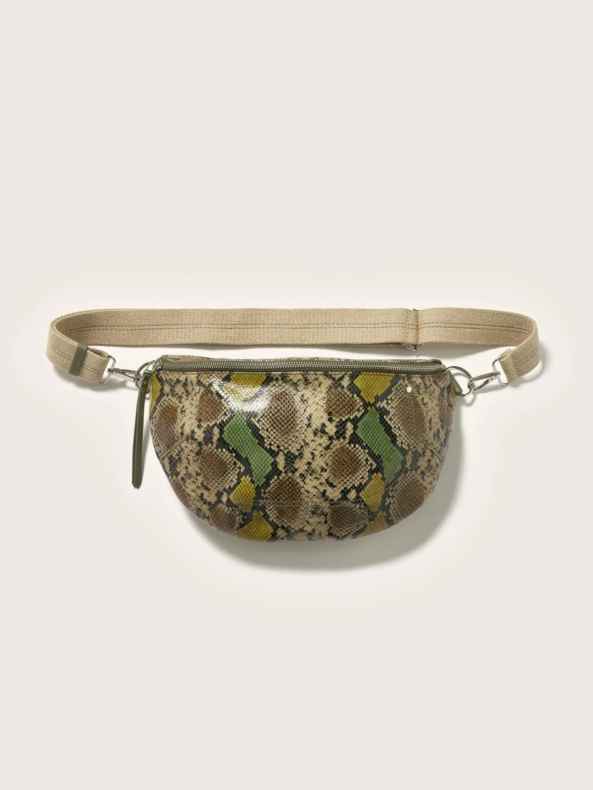 Soepele heuptas van veelkleurig leer met pythonlook.