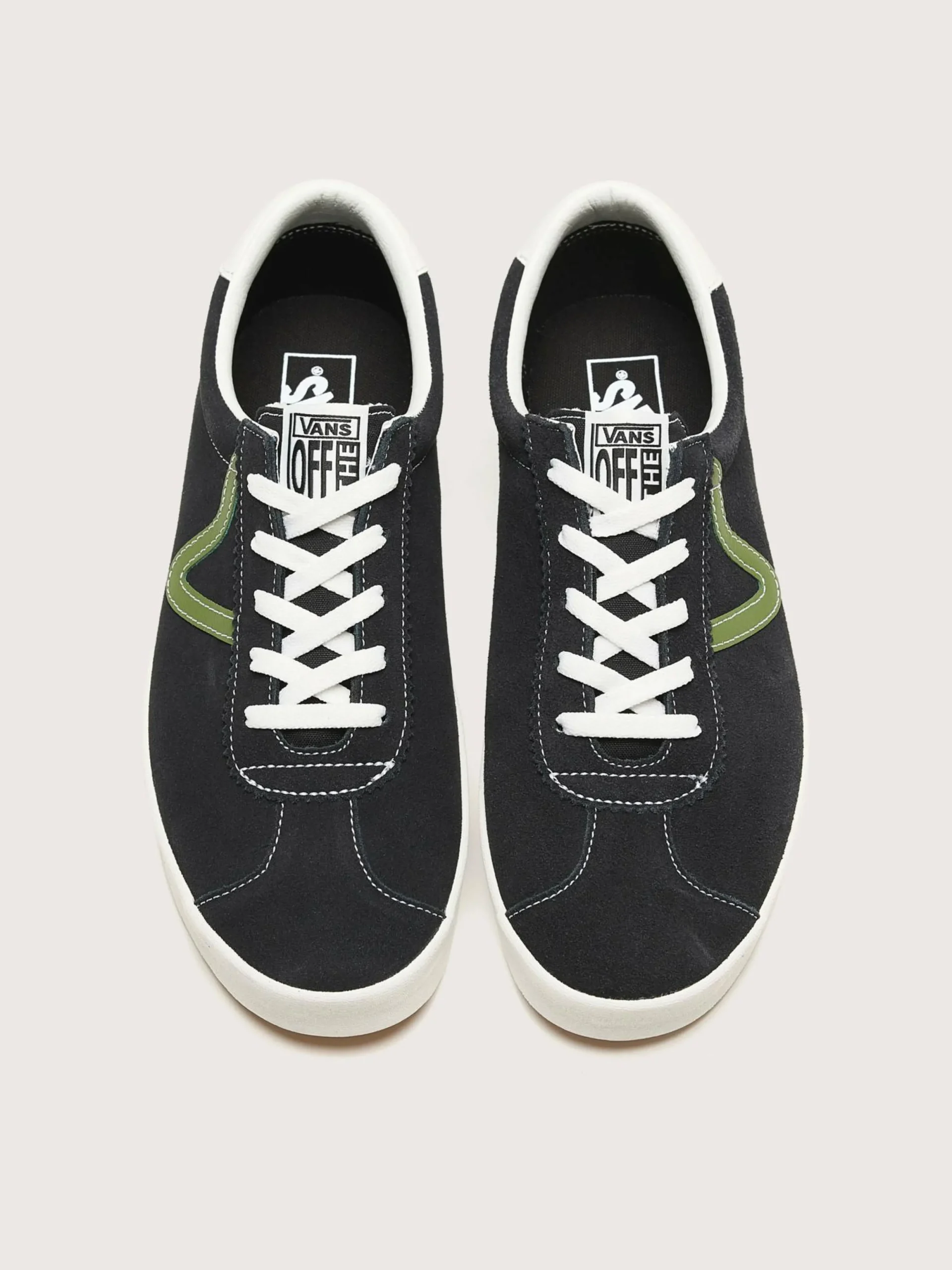 De Vans Sport Low schoenen hebben een lage open kraag, een tweekleurig suède bovenwerk met lederen accenten en een old-school logolabel.