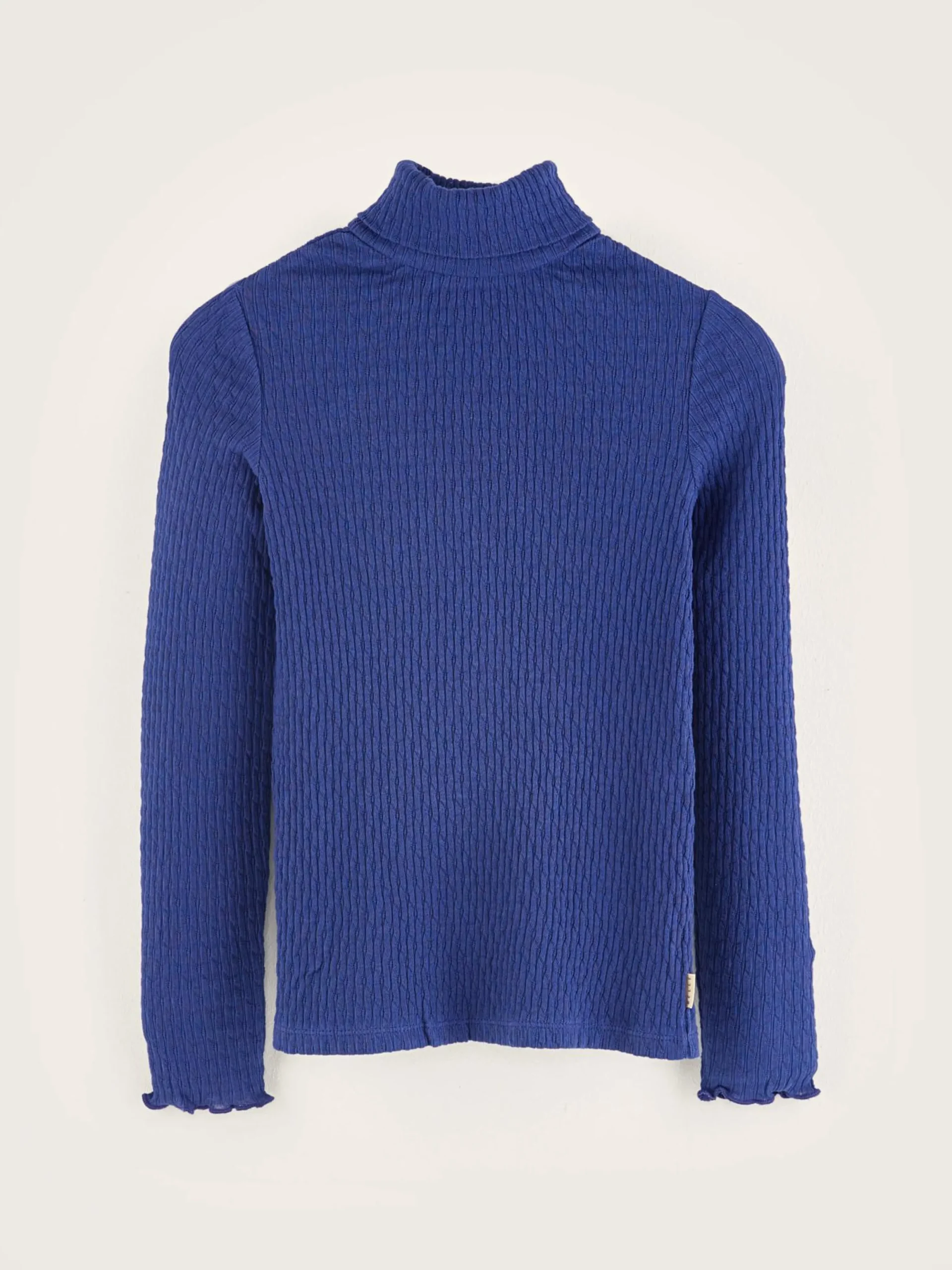 Blauw, aansluitend T-shirt met lange mouwen en een rolkraag.