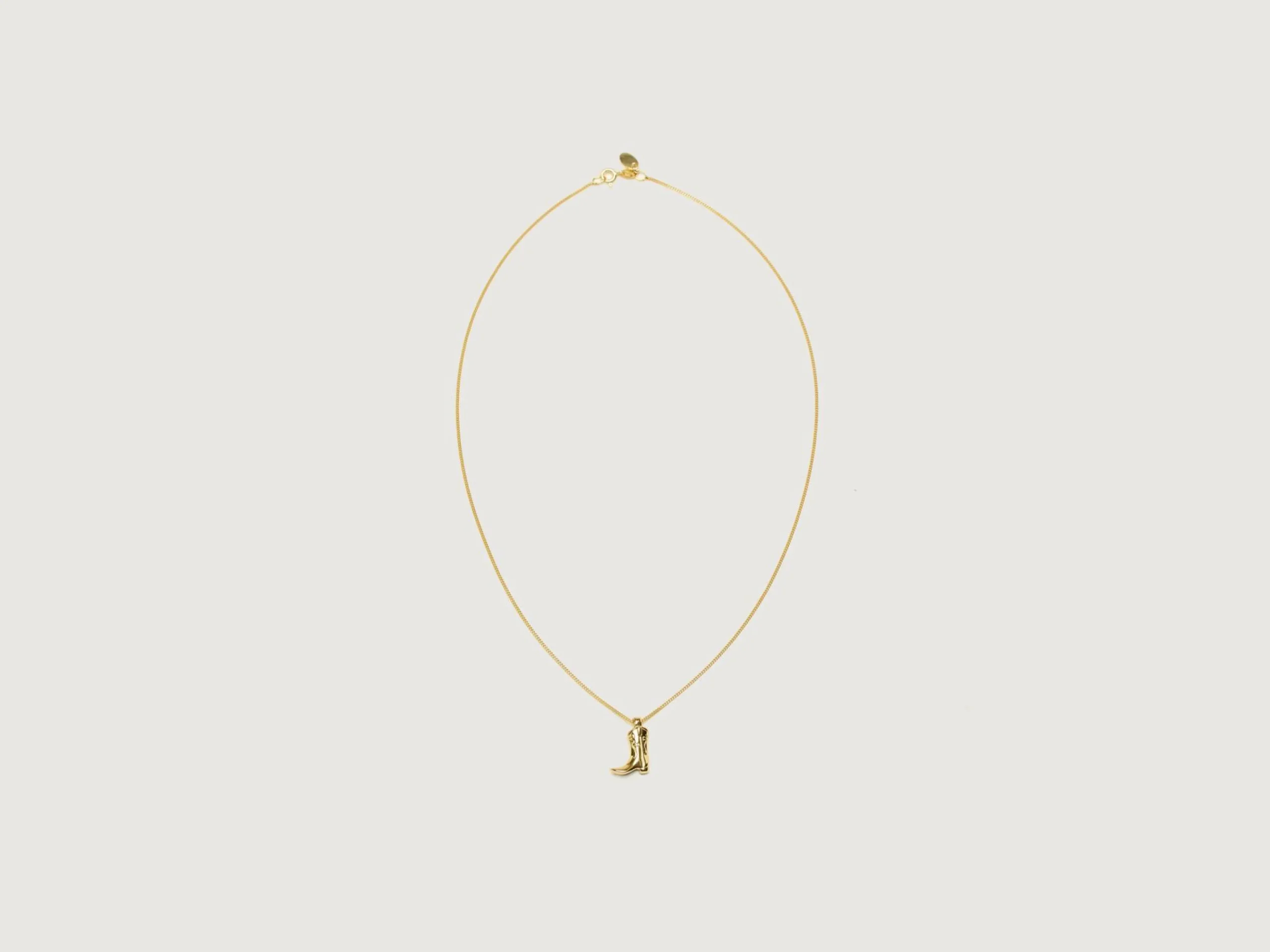 The Wolf Circus Cowboy Boot Charm Necklace has a small boot pendant on a gold-plated curb chain.