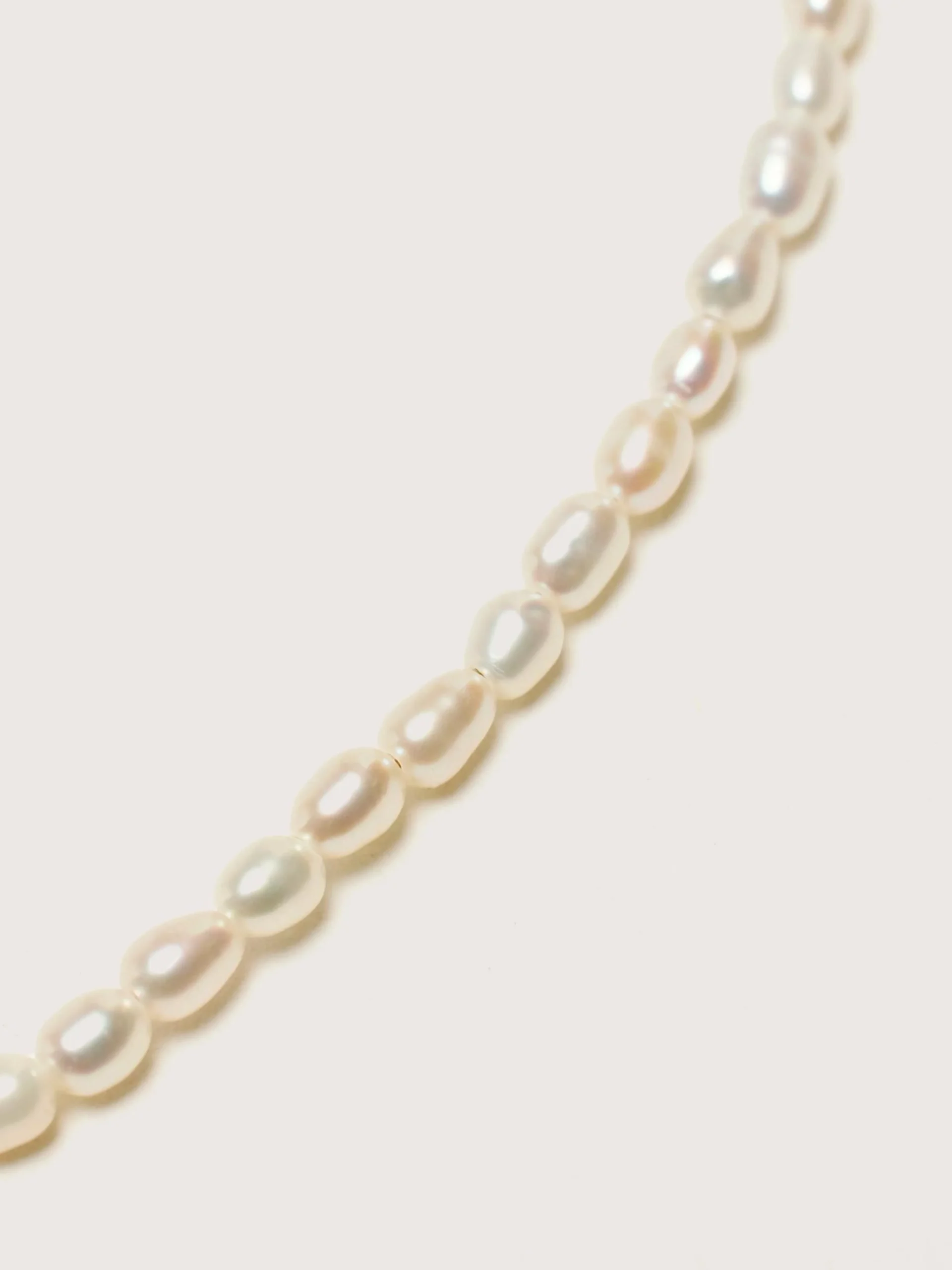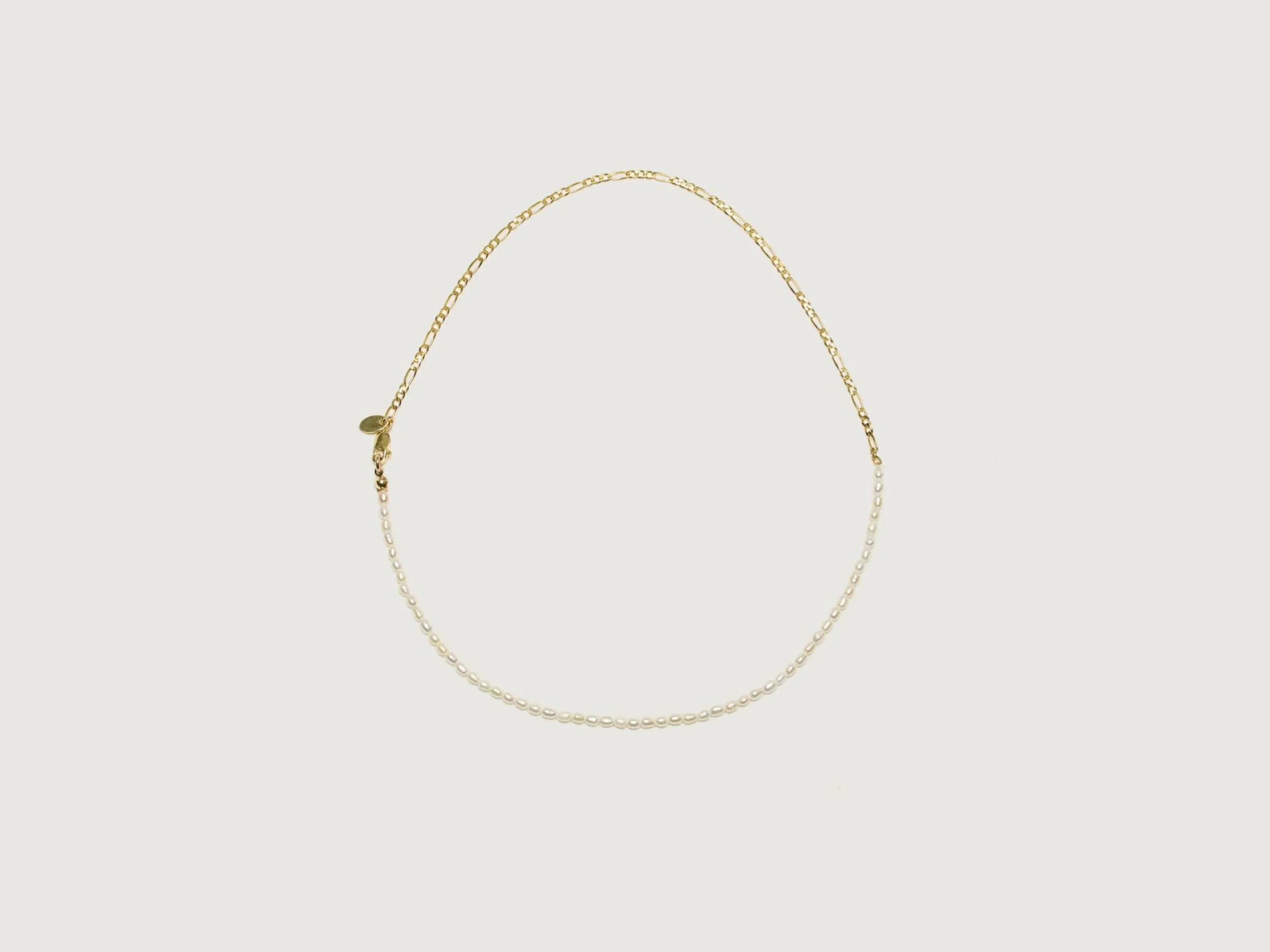 The Wolf Circus Mara Necklace features freshwater pearls on a gold vermeil Figaro chain.