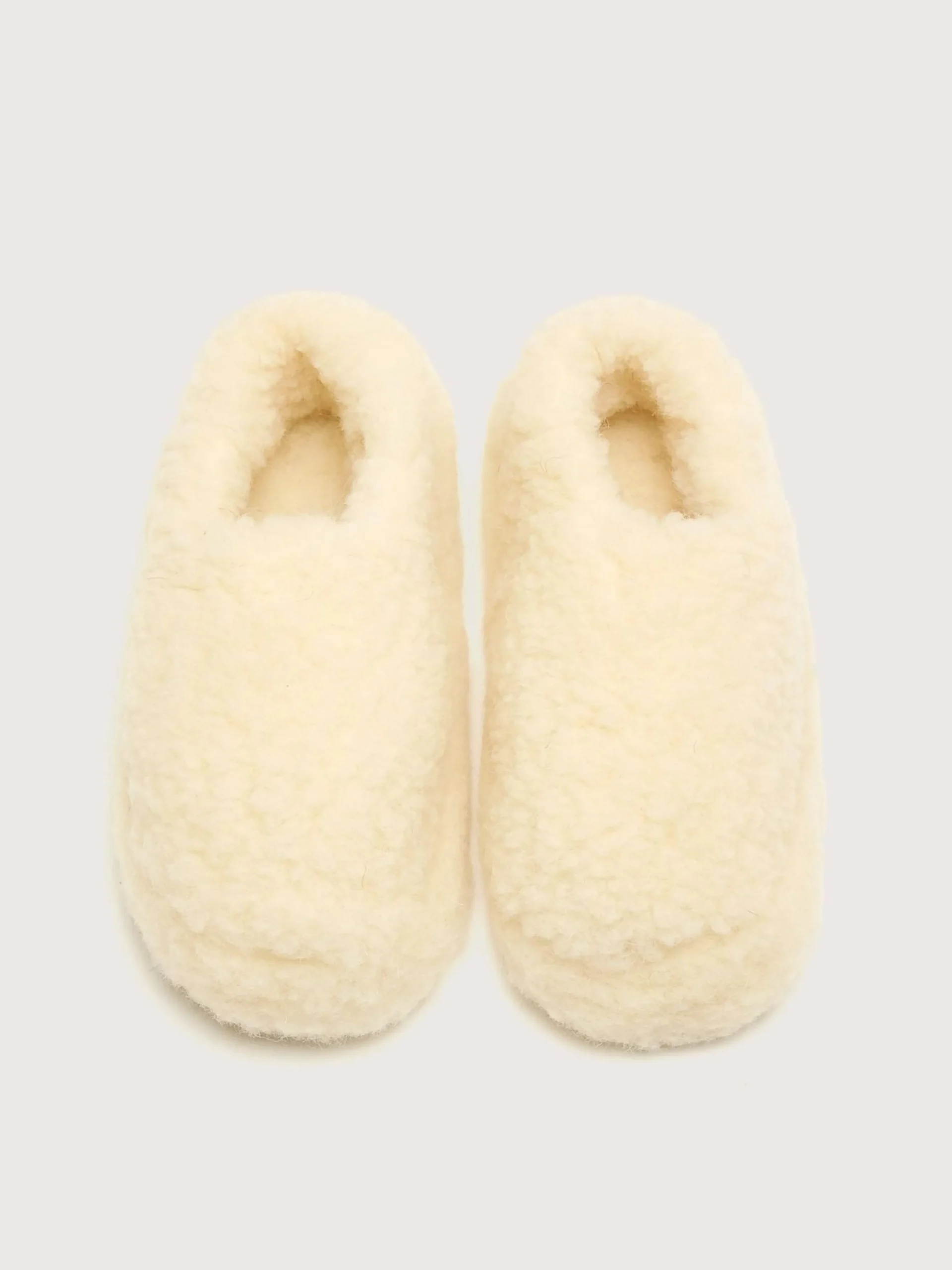 The Yoko Wool Siberian Slippers, crafted in soft wool, have non-slip outsoles.